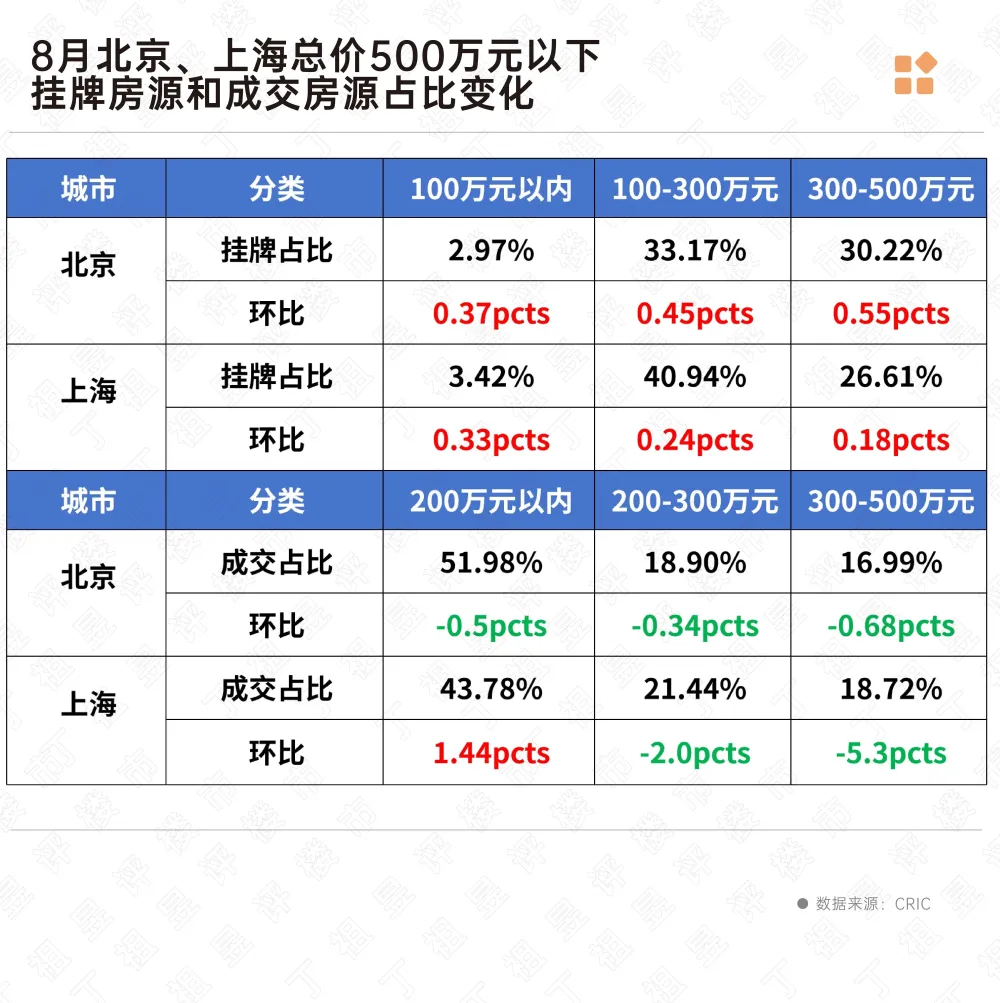 ![]() ![]() 从挂牌总价段来看,北京、上海、深圳、杭州四城新增挂牌量占比走势有着较大的差异化。 北京500万元以内低总价段刚需刚改房源业主挂牌积极性回升,新增挂牌量占比环比持增1.37个百分点,同时增幅在各面积段中也较为显著。 而对应该总价段成交端占比变革却在大幅下滑,北京300-400万成交环比下降了0.96个百分点,总价400-500万成交略有上升。 同样,在上海,总价500万元以下房源挂牌占比上升,环比增加0.75个百分点。但买家并没有同步增加,成交增幅仍小于挂牌增幅,总价500万元以下房源成交占比环比增加0.71个百分点,而200-500万价格段成交占比更是下降0.73个百分点。 这一总价段的业主挂牌多以“卖一买一”的置换客群为主,但现实是该价格段供应量大,而承接的买家不雅 望感情浓厚,从而拉长去化周期,价格下行压力也最大。 另外,上海600-800万元中改房源挂牌占比显著回升,8月环比增长0.37个百分点至9.29%,而对应的成交占比只有4.94%,且环比下降0.19个百分点。 这也进一步验证了总价300-500万市场去化难,进一步影响到这部门刚改客群向上置换的链条。 ![]() 另外,杭州在整体挂牌总量下滑的情况下,总价300万元以下刚需房源挂牌持续增加,二手房内部结构也迎来分化。 8月份,杭州总价300万以下二手房挂牌房源占比增长1.27个百分点,与之相对应的是该价格段成交占比却下降了2.86个百分点,主力刚需市场购买力明显减弱,相对来说,杭州总价300万以下纯刚需房源去化压力较大。 杭州二手房市场需求向上转移比力明显,总价500-1000万中高端业主挂牌意愿明显低落,挂牌占比环比下降1.19个百分点,而成交占比明显增长。 重点都会低总价段新增挂牌房源占比持续上升,刚需市场“买方”特性更为明显,议价空间相对较大,业主为快速出货“以价换量”推动二手房价下探。 ![]() 从新增挂牌房源变革来看,北京、上海和深圳业主信心 有所恢复 ,出售意愿增强,而杭州挂牌积极性回落,市场感情相对谨慎。 基于二手房业主挂牌心态变革和各都会二手房成交结构特性来看,二手房市场热度还将进一步回落。一方面挂牌量增多,市场供应量坚持 高位;另一方面优质产物力新房 入市将分流部门高端客群。 在供应增加的情况下,挂牌基数较大的刚需盘业主将会越来越难,如果没有显著的价格优势,交易营业 周期可能会进一步拉长,能否快速出货还要看业主的让利幅度。 ![]() |