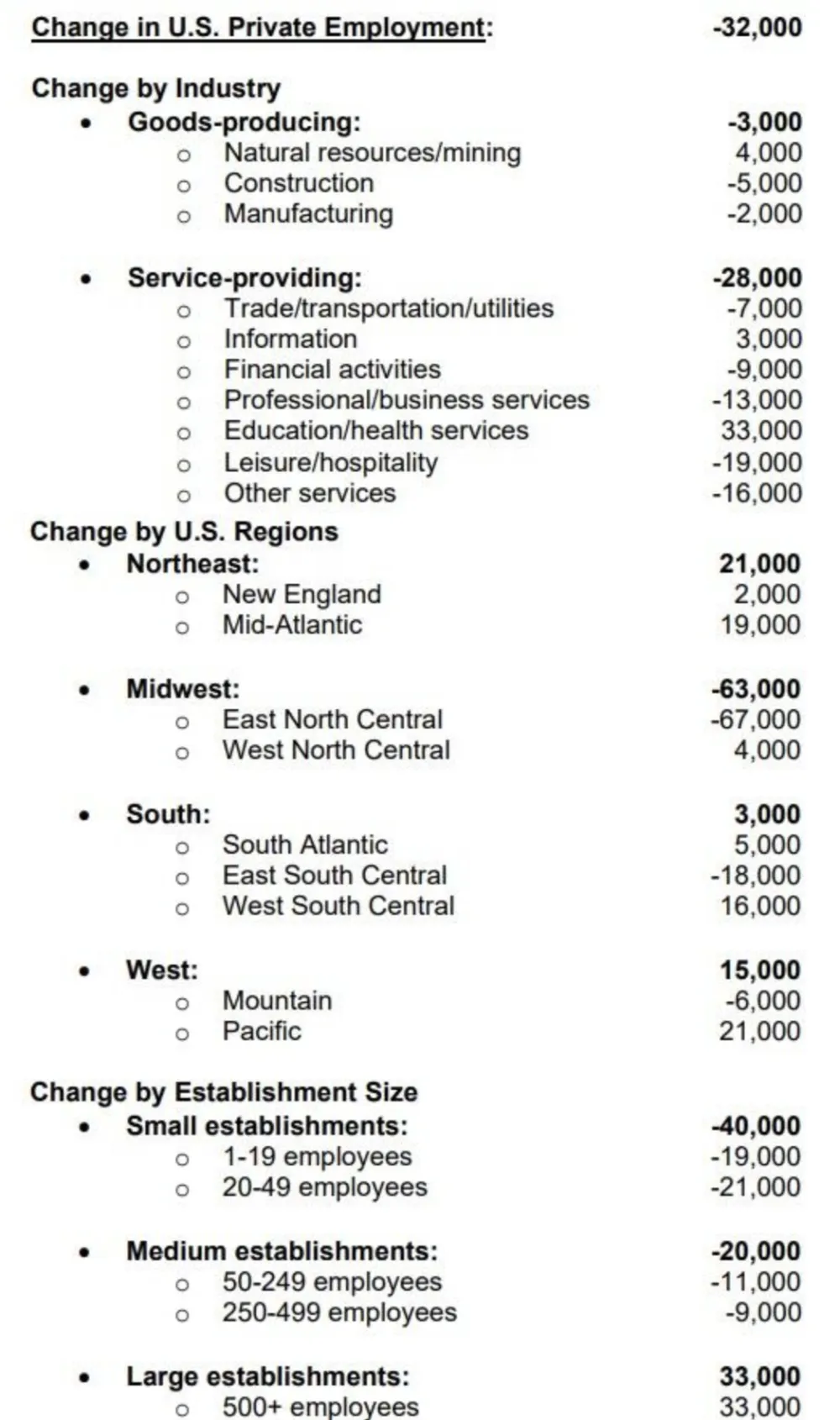 美国私营部门就业人数在9月意外 下降,这不仅放大了经济降温的信号,也让生意业务员们从新 将美联储在年底进步行两次降息的可能性摆上台面。 周三发布的数据显示,美国9月私营企业就业人数意外 镌汰32000人,而此前一个