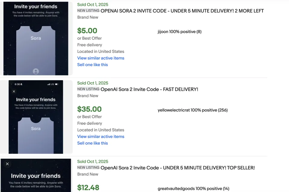 的在线跳蚤市场上,一场围绕Sora邀请码的地下买卖业务正在火热进行。 据统计,自应用宣布