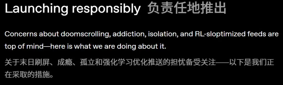 :信息茧房、成瘾、社交孤立、低质信息流……并郑重承诺,Sora的优化目标不是用户时长,而是「最年夜