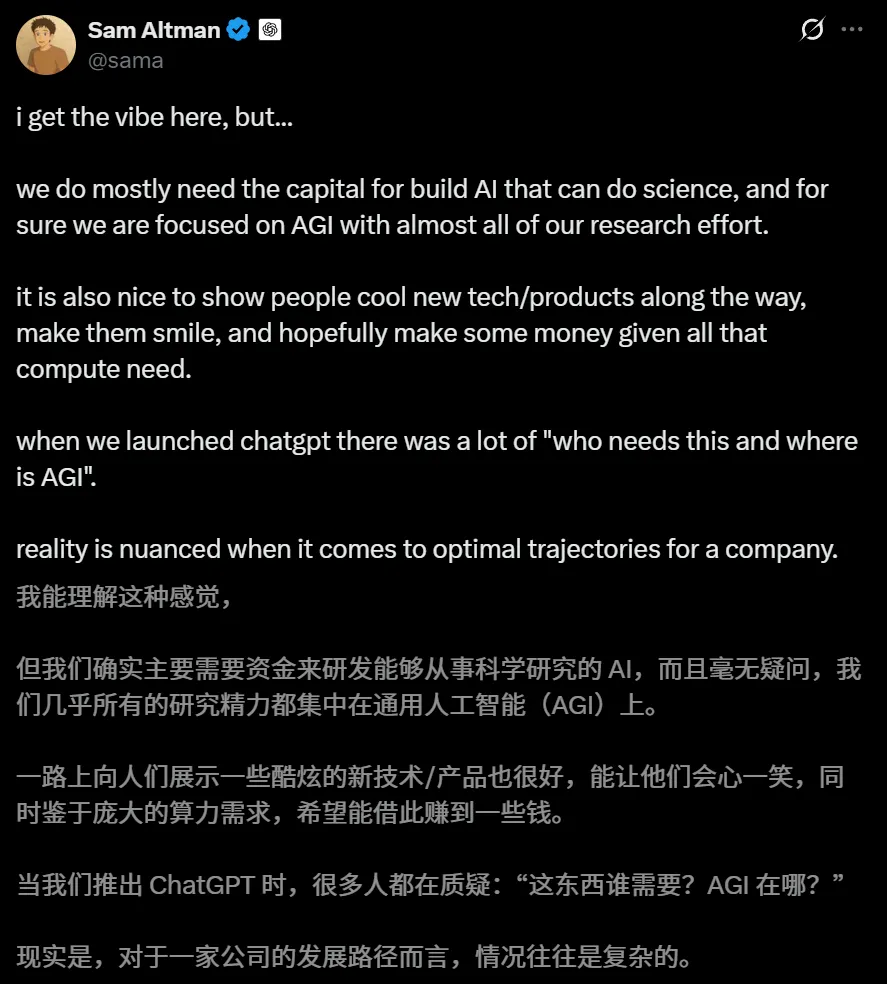 和外界的疑惑,CEO Sam Altman亲身下场,为公司将巨额资本