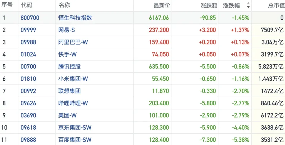 财联社10月2日讯(编辑 冯轶)港股本日迎来10月开门红。停止收盘,恒指收涨1.61%,创2021年7月以来新高,恒生科技指数收涨3.36%,国企指数收涨1.77%。 【10月行情开门红 恒指站上27000点关口重启攻势】 盘面上,大型科网股体现强势,快手大涨逾8%,阿里巴巴、百度、小米、京东均涨超3%,腾讯、网易、美团等公司也集体飘红。 ![]() 其他方向上,黄金有色、锂电、半导体股延续近期强势。汽车、生物医药等热点也集体跟涨。而下跌的板块中,地产、券商、航运等板块相对弱势。 整体上看,恒指本日收盘成功站稳27000点关口,短线有望重启攻势。