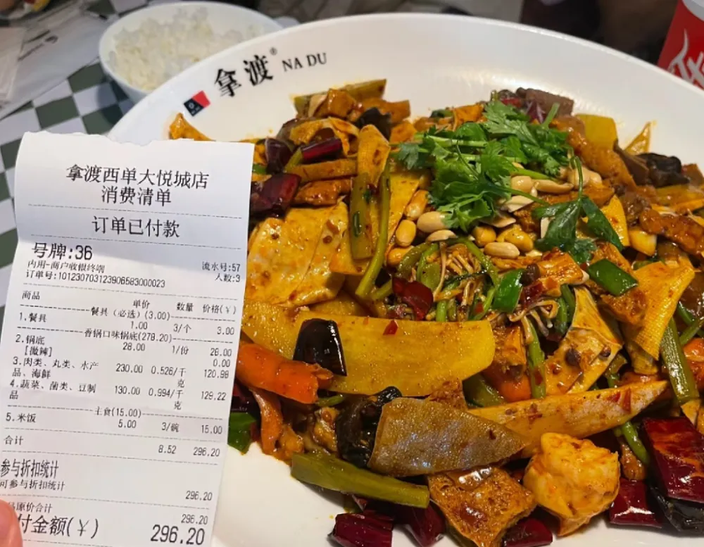 1 打工人“快餐顶流” 做出了违背祖宗的决定 没有哪个餐馆的批评区能像麻辣喷鼻香 锅一样,堪称“年夜 型背刺血泪现场”。 跟麻辣喷鼻香 锅的贵比起来,小弟麻辣烫可以说是小巫见年夜 巫。有人晒图,有人喊冤,更有人被气到想报警。 有人晒出自己在麻辣喷鼻香 锅店消耗的账单:一盘价格将近300元。 ![]() 网友宣布 在交际平台的一张实拍图:一个年夜 盘里,几段芹菜、几片土豆、几粒花生孤零零堆成一小团。 哪怕这么抠抠搜搜的点菜,账单高达178元,价格离谱的仿佛是有什么把柄在老板手里。 ![]() 高考后火过一个话题,让在校年夜 门生们给高考生提点建议。 其中热度最高、被以为实用 性最强的一个爆火建议是高考完的暑假少吃点鸡肉、麻辣烫、麻辣喷鼻香 锅,“这些器械 年夜 学你要吃4年”。 但出了年夜 学才发明 ,打工人连麻辣烫和麻辣喷鼻香 锅都吃不起了,91元一锅的“奢华 年夜 盘”,能把打工人气笑了。 ![]() 总结一句话:麻辣喷鼻香 锅,点菜时像吃自助,结账时像被“掠夺”。 暖锅与喷鼻香 锅,堪称巴蜀美食的绝代双骄。 麻辣喷鼻香 锅发源于巴蜀地区,以四川、重庆等地方 麻辣风味融会 而来,麻辣喷鼻香 锅源于土家风味,自己就是老庶民 的家常做法,跟高端和贵根本搭不上边,绝对是路边摊的平民爆款美食。 还流传着一种说法,麻辣喷鼻香 锅实在是北京人发明的改良菜。 因为 巴蜀地区,暖锅、干锅、串串、冒菜、钵钵鸡……依照 麻辣喷鼻香 锅的辣度几乎排不上号,而北京餐馆们,把“麻辣”两个字明明白白地顶在头上,发扬光年夜 。 北京风行 的年夜 量 麻辣喷鼻香 锅店甚至完全不输四川:麻里麻里、拿渡、川成元……都是在北京开遍年夜 街小巷。 ![]() 但如今吃一顿麻辣喷鼻香 锅,控制拿菜的重量,是一门繁芜 的技能活。 最让顾客头疼的就是,价格单位的“笔墨游戏”。 个位数的价格,和菜市场一样便宜 。细看,单位只敢写两。价格标注异常 有技巧性,让人发生 便宜 的假象,营造一种不贵的错觉。 选菜时,年夜 部分人都默认是按每500克来标,而一些商家实在是按每50克的价格来标。各人一般 很少去关注 小字标注的计量单位,只会注意到前面年夜 年夜 的价格数字。 ![]() 还有可以荤素一路 称,按同一个价格盘算,把肉类和蔬菜一个价格,让顾客有种薅羊毛占便宜 的轻松感。 当你对着一盘快300元的麻辣喷鼻香 锅震动的韶光 ,换算一下计量单位便会豁然开朗 : 78一斤的肉类,可以在山姆买到谷饲西冷牛排;而蔬菜也贵到了35一斤。 ![]() 选菜区的保鲜柜,是商家和顾客的“生理战场”。 从前拿菜像吃自助,如今拿菜像测验——得算克重、避高价、防套路,稍不注意就超预算;当灯光打在码得整整洁齐的菜盘上,在水雾中更显诱人,怎样遴选 、拿菜才是更年夜 的难题。 每一个盆都是一个盲盒,在上秤之前,谁都不知道自己到底拿了若干 。