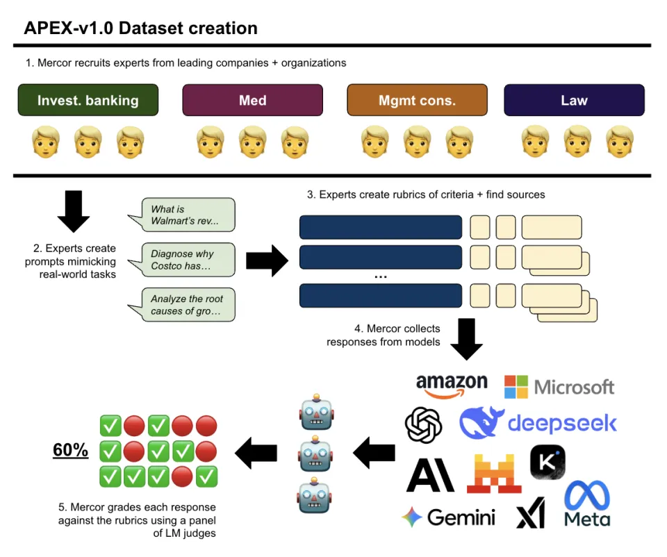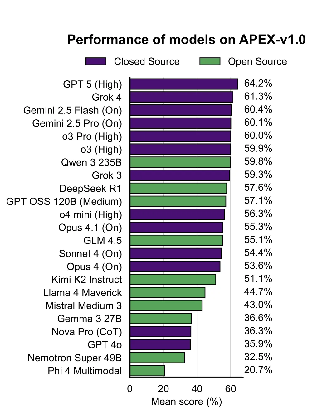 AI年夜 模型也好,智能体也好,在各种测评榜上刷得不亦乐乎。对于跟踪模型进展,发现模型能力上限确实 有用;不过衡量的是模型的抽象能力,而不是具有经济价值 的产出。 从投资界、财产界到公众,对于人工智能的刷榜和演示能力固然感到惊艳,但他们关注 的重心,正在从“核弹级的炸裂”,转移到真正的拷问,花这么多钱和这么多名校绝顶智慧的孩子,搞这些东西,最终用来干什么? 就是AI的经济价值 有多年夜 ,在实际工作中,替换或者增强人类的潜力有多年夜 ; 假如很年夜 的话,如今发挥出了多少?AI交付实际工作的能力,可能更需要衡量,假如说如今派上用场,人们还不放心的话。 硅谷的AI雇用独角兽公司Mercor也想知道,帮助那些顶级AI年夜 厂和独角兽企业找到的学霸们,弄出来的年夜 模型,除了又当学霸之外,还醒目什么实际工作。 “人工智能在奥林匹克数学方面已经超越人类,但这些能力可能与经济成长 脱节。拥有一万个博士学位固然很好,但拥有一个能靠得住 地帮你报税的模型就更好了。” 他们设计了一个AI生产力指数 (AI Productivity Index, APEX),首先选取了4个最高经济价值 的白领行业进行测试,约请了投行、咨询、司法 、医学的资深专家,把他们在实际工作中遇到和办理的问题搬出来,让23个年夜 模型下到职场,当下这四个行业的“牛马”:投资银行助理、办理 参谋 、年夜 型律师 变乱所助理和初级保健医生 (MD)。 表现如何?结果如下: ![]() 排名前五的,都达到了及格线60分,排名第5-10名的,接近及格线。总体来看,OpenAI的模型家族,当牛马的能力最强。 GPT-5、Grok4、Gemini 2.5位居前三,值得关注 的是,Qwen 3 235B和DeepSeek R1分别 获得 第7名和第9名,在开源模型中排名前两位,GPT OSS 120B(Medium)名列开源第三。相比之下,编程明星Sonnet 4 表现一般。 下面这个测试的案例,来自一家律所近来遇到的一个真实客户,这位音乐家的版权继承人遇到了贫苦,想找律师 帮助办理问题。律所助理要对这个客户的正当继承问题做出初步判断。该测试涉及到22条标准,8个司法 来源 ,不凌驾10万个token。 ![]() 诸云云类的案例,统共200个,每个行业50个,分别 由20名左右资深专家设计。Mercor通过本身的平台找到了这些专家: