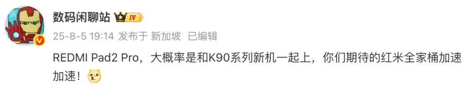 也不是没有。之前有爆料显示,REDMI Pad 2 Pro 有望和 K90 系列一块发布。这款平板现在已经在国际市场亮相,对千元平板感爱好的朋侪,咱们提前看看。 外不雅