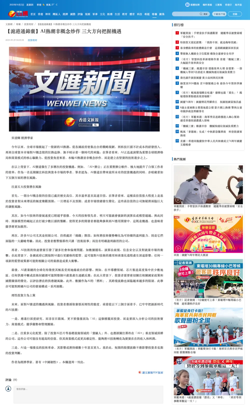 宋清辉 著名经济学家【沪港通锦囊】AI高潮非概念炒作 三年夜 标的目的 把握机遇今年 以来,环球市场掀起了一股新的AI高潮。从各国政府麋集出台的战略规划,到科技巨子 不计成本的研发投入,再到环球资本市场对AI概念股的