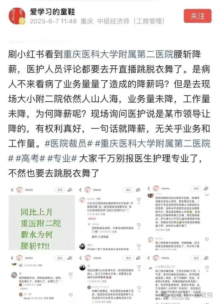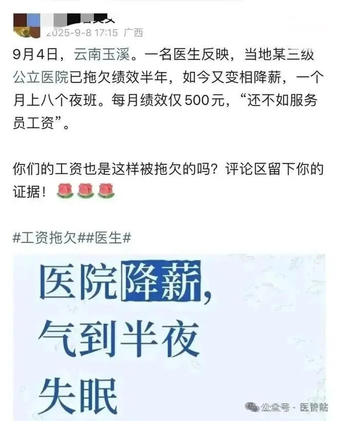 思索。8月2日,一位在成都三甲病院 工作的大夫透露,其绩效收入涌现 了大幅下滑,从原本的10000元左右降至仅1000多元。他指出,病院 绩效管理体系在5月份核算出的绩效仅为1800多元,而全体 科室的绩效也仅为13000多元,这些收入需由多名大夫配合 分配,终极得手的金额显得微薄。![]() 有网友留言:我们三甲病院 ,医保报销部分不绝给我们拖欠,绩效都拖了三个多月没发了。另有 偕行留言:我们病院 下个月开始第二轮降薪,公积金从12%降到8%,本年到如今一分钱绩效都没发,我们每个月的病人量最少的时间都有70多,最多的时间121个,每个月上着7个夜班,拿着3000来块钱的工资撑着。![]() ![]() 9月13日有山东网友发帖称,本日刚发了工资,县级市二甲病院 大夫的基本工资还不如去送外卖了。许多人觉适当大夫好,地位高,工作稳定,赚的多。呸呸呸,你说的是哪个年代的呀。许多同事都想转行了,要不是因为舍不得铁饭碗,实在真的不如去打工了。 ![]() 针对此事,有网友分析,症结 是疫情过后,天下各地都在新建扩建病院 ,造成医疗资本 严峻多余 。如今除了省级病院 生意红火外,州里卫生院门可罗雀,县级病院 业务大幅度淘汰,医技收入大幅度降落,病院 举步维艰。市级中央病院 保存 无忧,然则 市级其他的病院 ,也保存 困难了。平易近 营病院 纷纭 倒闭关门。如今要严禁新建扩建公立病院 ,防止反复 建立,糟蹋 资本 。 也有网友指出,另有 :绩效工资,手术补助 ,加班费,夜班费,午餐补助,处方费,挂号费,全勤奖。假如是主治医师,手术刀手,另有 病人红包。 而很快有网友反驳,多数县病院 工资如今就是这么个情况,你的头脑还停在5年前。 ![]() 说到病院 收入大幅降落,不足为奇,克日有网友发帖称,9月4日,云南玉溪。一名大夫反应 ,当地某三级公立病院 已拖欠绩效半年,如今又变相降薪,一个月上八个夜班。每月绩效仅500元,“还不如服务员工资”。 ![]() ![]() 降薪征象的广泛存在使得超过折半 的医务人员感受到了收入的淘汰。据报道,多家三甲病院 的大夫纷纭 在交际媒体上披露了他们收入的显著下滑。例如,某三甲病院 的外科大夫透露,他的绩效工资被直接砍半,夜班费也大幅降落,导致底子工资所剩无几,部分科室大夫的月收入甚至不足5000元。另一家医科大学第二从属 病院 更是自2024年9月起停发了底子绩效,全院医护人员的月收入广泛降至3000元左右,有的住院医师仅能依靠浮动绩效委屈 维持生存,内科科室大夫主诊30名患者所获得的月奖金也仅有2000元。 近来公布 的《医疗人才2024年薪资及就业调研报告》进一步证实了降薪的广泛性。报告显示,到场调研的29469名医务人员中,有高达57.9%的人在2024年经历了薪酬降落,这一比例相较于2023年的调研结果增加 了20个百分点,显示出薪酬降落的趋势正在扩大。从病院 级别来看,二三级病院 的降薪人员占比超过了一级病院 ;而从病院 性质 来看,公立病院 的降薪人员占比则超过了平易近 营病院 。 ![]() 导致降薪的原因错综复杂,涉及多个方面的因素。其中之一是政府财政紧缩与病院 债务压力的问题。公立病院 作为公益二类事业单元,其工资、奖金和福利紧张依靠于医疗服务收费。然而,如今各地财政紧缩已成为广泛征象,这给病院 带来了伟大 的经济压力。公开数据显示,2020年天下有20个省份的公立病院 涌现 了吃亏 ,占比达到 62.5%;同时,753家三级公立病院 中也有43.5%面临吃亏 。此外,政府办病院 的负债总额也在不绝攀升,2021年已高达19150.69亿元,资产负债率攀升至45.10%。这些大情况的多重挤压使得医务人员的收入不得不面临大幅降落的现实。三年疫情对医疗资本 造成了伟大 斲丧,转变 了患者就医的风俗和经济蒙受能力。随着疫情解封,部分病院 面临病人暴增的情况,然而,医疗费用的掌握 却更为严格,导致“增收不增利”的征象广泛存在。在全平易近 负债率攀升的配景下,政府化解债务的压力也传导至医疗体系。同时,国际情况动荡引发的通胀压力进一步推高了病院 的运营本钱。 医疗改革与医保控费的影响日益浮现 。三明医改履历正在天下规模 内加速推广,其核心目标在于优化医疗资本 配置、掌握 不合理费用,以确保医保资金的可连续性。陪同着医保付出方式的改革,DRG/DIP付费在天下规模 内迅速推动 ,估计 到2025岁尾 将覆盖全体 开展住院服务的医疗机构。只管国家医保局明白禁止将医务人员薪酬与科室业务收入挂钩,但在多家病院 中,这一问题仍旧存在,导致科室的吃亏 终极由大夫来平摊。 ![]()