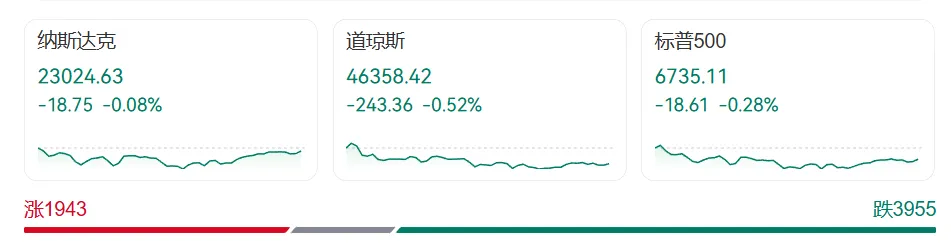 指数团体收跌,标普500指数和纳斯达克指数自历史