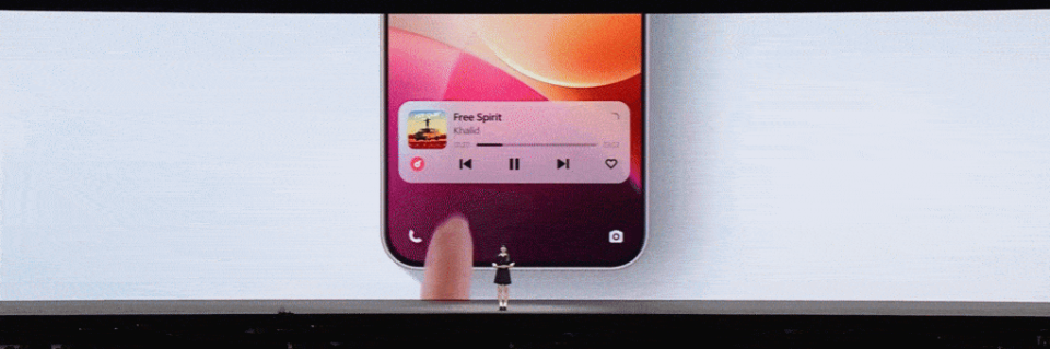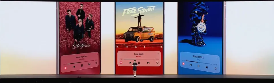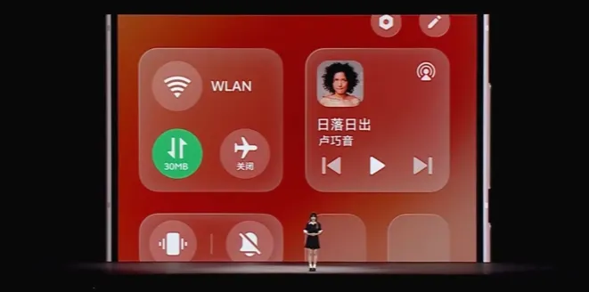 清楚的同时,加强背景质感的体现。说得有点玄乎,实在肉眼看上去,有点像另一种材质的“毛玻璃”。固然啦,动态透彩材质和新的实时模糊到底好欠好看,见仁见智。 在锁屏长按音乐控件,会把音乐专辑封面,变成全屏背景。虽然