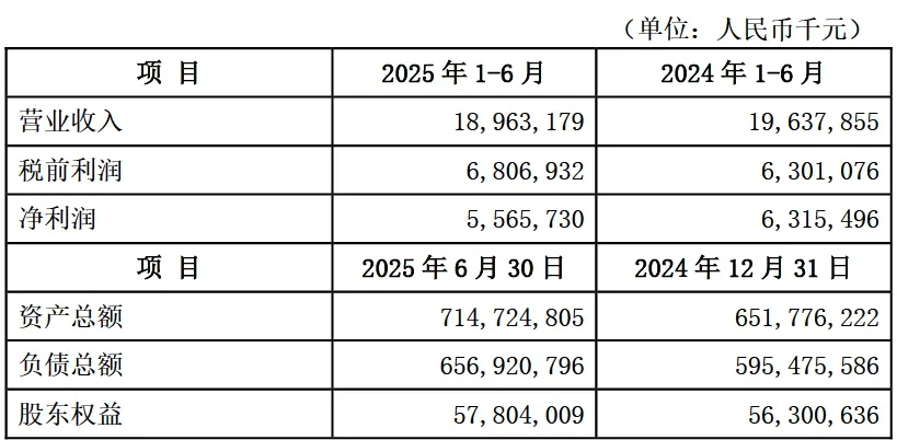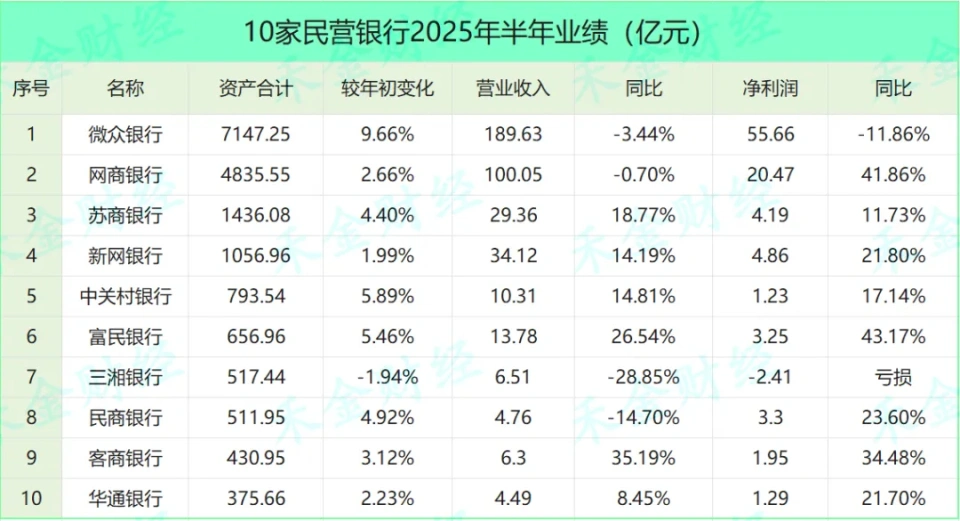 净利润仍旧高出其他18家民营银行之和。克日,微众银行发布2025年半年度陈诉。制止2025年6月末,微众银行资产总额首超7000亿元,到达7147.25亿元,较岁首年月 增长9.66%;2025年上半年微众银行实现营业收入189.63亿