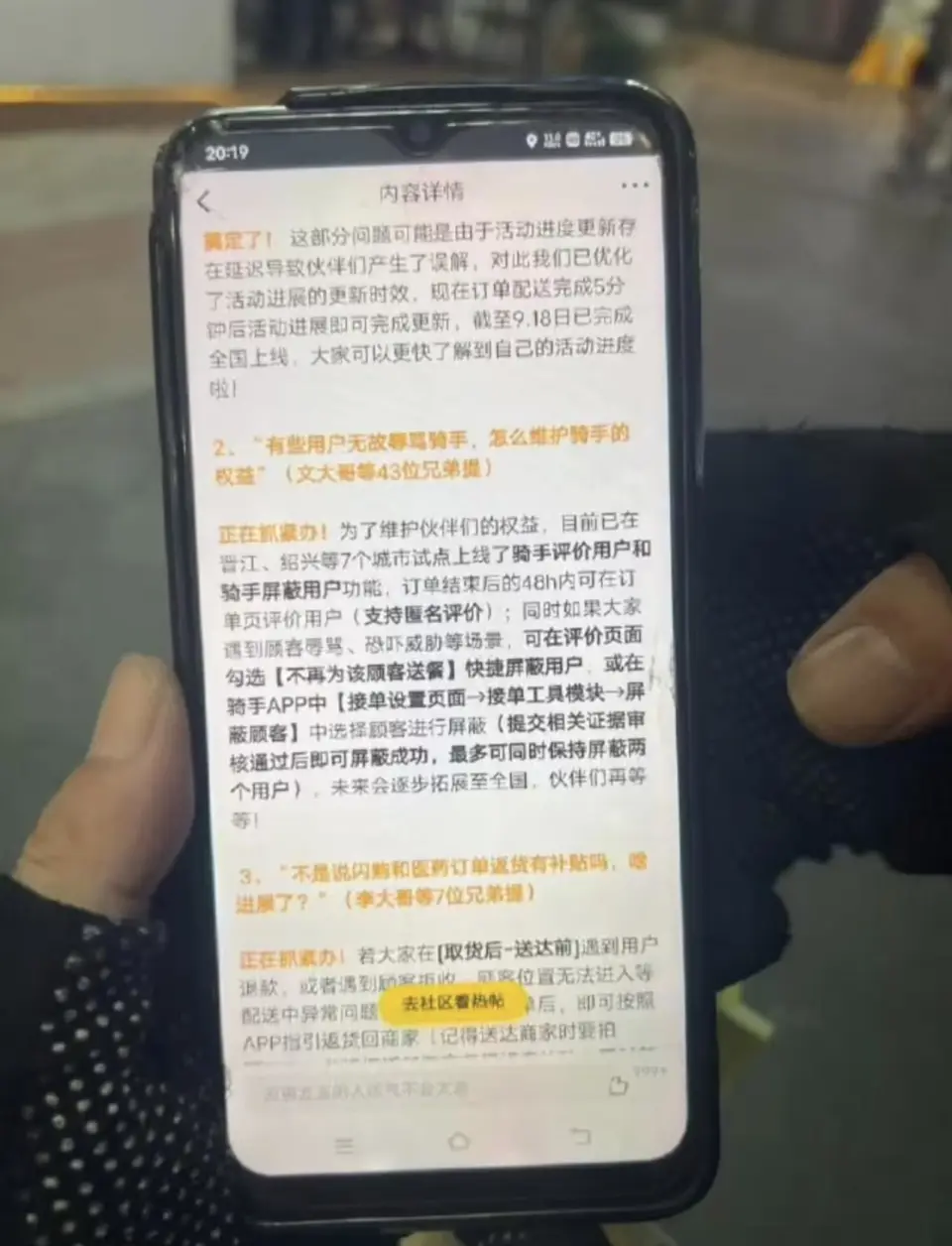 ![]() 美团正式回应此前网络热议的“外卖骑手可屏障 顾客”功能,确认该功能已在福建晋江、浙江绍兴等七个都邑 启动试点。骑手在订单竣过后48小时内,若遭受 顾客辱骂、恐吓威胁等极度环境,可经由过程 系统勾选“不再为该顾客送餐”,实现365天内不吸取该用户订单。 美团方面表示,此举旨在平衡骑手与用户权益,后续将根据试点结果徐徐扩年夜 包围 规模 。 骑手评价与屏障 双轨并行根据美团官方说明,新功能包含 两年夜 核心机制: 骑手评价系统:骑手可在订单完成后48小时内对用户举动进行反馈,评价维度涵盖“服务立场 ”“沟通友好度”等,评价结果将作为平台优化服务流程的参考。 主动屏障 功能:若骑手遭受 用户辱骂、威胁人身安全 、恶意投诉等举动,可经由过程 订单页勾选“不再接单”选项,系统将主动屏障 该用户365天。屏障 时代 ,用户订单不会分配至被屏障 骑手,但其他骑手仍可正常接单。 ![]() 靠近美团的知情人士透露,该功能计划初衷是办理骑手长期面对的“情绪劳动”逆境。比方,部分用户因等候时光 过长对骑手进行语言攻击,或经由过程 虚伪投诉导致骑手收入受损。试点都邑 骑手反馈表现,新功能上线后,骑手群体对平台满意度提升约15%。 七城数据验证功能可行性自2025年10月初试点启动以来,七个都邑 已累计处置惩罚屏障 申请超2.3万次,此中87%的屏障 案例与用户语言暴力直接相关。比方,浙江绍兴一名骑手因拒绝用户“超时补偿50元”的无理要求,遭对方辱骂“底层垃圾”,骑手随后使用屏障 功能,系统在10分钟内完成考核并生效。 美团客服团队同步升级考核机制,经由过程 语音识别技术、汗青订单分析等手段,确保屏障 申请的真实性。数据表现,试点时代 误屏障 率不够 0.3%,有效保障了用户正常下单权益。 业内专家指出,美团此举标记着外卖行业从“单边规矩 ”向“双向治理”转型。过去 ,平台规矩 多侧重于保护 用户权益,如“超时赔付”“无条件退款”等,而骑手权益常因用户投诉被牺牲。此次功能上线后,骑手获得 “用脚投票”的权利 ,倒逼用户提升沟通素养。 ![]() 比较 同类平台,美团的365天屏障 期长于多数竞品(如某平台屏障 期为90天),但设置了严格的实用处 景。司法 人士提醒,若骑手滥用屏障 功能假造投诉,大概面对平台处罚甚至司法 追责。 支持与争议并存外交媒体调查表现,62%的用户认为 “公道屏障 极度举动者有助于提升服务质量”,但28%的用户担忧“被误屏障 后难以维权”。对此,美团回应称将优化申说流程,用户若认为 被误屏障 ,可经由过程 客服提交证据申请清除限制。 骑手群体则普遍 接待新规。北京朝阳 区骑手李师傅表示:“从前碰到骂人的顾客只能忍,如今至少能躲一年,心里踏实 多了。”部分商家也支持该功能,认为 可淘汰因用户无理投诉导致的店肆评分波动 。 美团产物负责人透露,下一步将引入AI情绪识别技术,主动标记订单中的冲突风险,并推送调解话术至骑手端。同时,平台计划在2026年第一季度前完成世界 推广,包围 所有开通外卖服务的都邑 。 行业分析师丛杰指出,跟着 骑手权益保护 律例 的美满,外卖平台需在效率与公平间探求新平衡点。美团此次功能创新或成为行业标杆,鞭策 全体 配送生态向更人性化标的目的 成长 。 |
