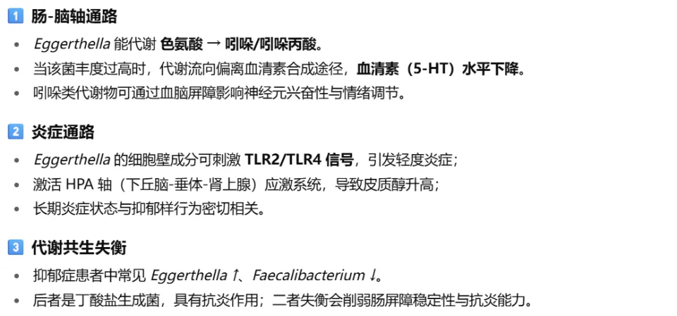 菌-肠-脑轴功能,进而诱发抑郁症。除了抑郁症,艾格特菌在多种疾病中都出现
