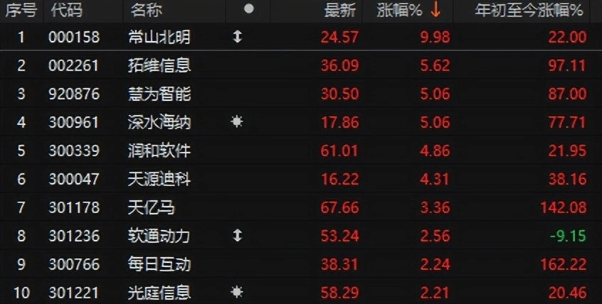 然后市场给传成微软产物要撤出,鸿蒙概念股走强,常山北明章涨停,拓维信息、润和软件等个股跟涨。 ![]()