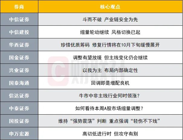 财联社10月19日讯(编辑 平方)十大年夜 券商最新计谋不雅 点新鲜出炉,详细如下: ![]() 中信证券:斗而不破 财产链安全 为先 当前A股最大年夜 的布局性基本 面线索依然是中企出海,傍边 美重新陷入斗而不破的状况 时,或连续影响市场对出海的订价。4月后的TACO履历加上中国底气的增加 ,导致不少投资者调仓时犹豫不决,给了盈余 板块阶段性高切低并获取超额的机会,但这只是旧逻辑下的轮动,并非新的主线。新的线索是中国恒久且体系性的保障资本 安全 、财产链安全 和领先技能安全 的计谋 意图,盈余 轮动竣事后,需密切 跟踪大概贯穿 明年的新线索,包含 财产链安全 和端侧AI。 密切 关注中国有充足供给 上风的行业,一是稀土、磷为代表的计谋 资本 ,二是锂电设备、光伏设备代表的有极强份额和技能上风的行业(要克制廉价的技能出口,尤其是固态电池如许的新兴领域),三是纯电乘用车、消费电子面板为代表的有竞争上风,但同时也有内卷外化方向 的行业。 中信建投:缩量轮动继承 风格 切换已起 继九月初算力板块交易过热见顶后,市场进入牛市整顿 期,呈现资金高切低、指数横盘、缩量轮动的特性,该特性主要系现在尚未到达牛市整顿 期竣事前提 、中美关系不愿定 性仍在、症结 集会前波动收敛所致。总体上我们认为 牛市逻辑仍在,一方面资本 市场改造 进入深水区,另一方面布局性景气供给 支持,资金面充裕 ,下修幅度或有限。中期配置方面,风格 切换已经开端 ,短期关注“反制+避险”,岁尾 关注盈余 +科技风格 。 重点关注板块包含 :盈余 、有色(稀土、贵金属)、大年夜 金融(银行、保险)、钢铁、农林牧渔、AI、电池、芯片、呆板人、立异 药等。 华西证券:爱护 优质筹码 修复行情将在10月下旬迟钝展开 中美贸易方面,近期美国贸易代表格里尔、副总统万斯、财政部长贝森特等均释放贸易和缓旌旗暗号 ,中美双方有望在接下来经贸磋商和APEC峰会两国元首会面期间 告竣部分共识 ,“TACO”交易再现。与4月7日各行业和风格 指数普跌差异,本次“关税风波2.0”更多体现为资金凹凸 切换,融资资金和ETF资金集团 仍在净流入,指向股市微不雅 活动性仍较充裕 。别的,资本 市场“稳市机制”建立和投资者回报制度完善是本轮行情差别 于以往的最大年夜 特性,也是 A 股“慢牛长牛”得以连续的制度基石,当前中国资产集团 不贵,短暂波动 后有望开启一轮修复行情。 行业配置上,指数波动 期会加快风格 轮动,低位的盈余 、金融可承接资金的流入。待布局再均衡后,市场向上突破大年夜 概率照旧依赖景气成长,资金仍有望重新聚焦科技成长和未来财产投资。主题上,建议关注“并购重组”。 国金证券:调解有望放缓 但主线变革仍会继承 本周A股市场涌现 了较大年夜 幅度回撤,且贸易辩论加剧不能表明原来受益于此逻辑的自立 可控板块本周回撤反而更大年夜 的现象 。我们认为 ,调解更深条理的原因 是:当前美国金融资产与GDP比值本就处于高位,服务 业走弱且科技成长 的进程 中矛盾开端 涌现 扩散(比方电力缺乏 )。A股4月以来的上涨更多与海外 逻辑同频,这轮调解也是布局切换的开端 。从最新变革来看,美国财长贝森特与国务院副总理何立峰举行通话、以及对美国地域银行坏账问题担忧的缓解在周五晚间鞭策 海外 市场有所反弹,降低了市场短期内急跌的概率。但需要看到的是,服务 业向下的气力并不会扭转,但制造业与全球什物 需求回升的阻力会因为关系和缓而缓解,市场主线的变革仍在继承。这也是我们一方面前期提示市场风险,又在中期表达“真正的牛市还未开端 ”乐不雅 不雅 点的底层逻辑。 配置推荐:第一,对国老手业的关注是短期的重点,近期行业景气度有所回升的内需行业值得关注:食物 饮料、航空机场、煤炭。第二,中期来看,在新兴市场制造业活动修复与投资加快的进程 中,什物 资产仍将占优,建议关注上游资本 (铜、铝、油、金)、资本 品(工程机器、电力电网设备),中心品(底子化工、钢铁)。第三,企业端资金活化的进程仍在连续,非银金融将受益于全社会资本 回报的见底回升。 兴业证券:以我为主 布局内部肯定 性 本周,跟着 中美贸易摩擦的影响连续、叠加美国银行信贷危机 等风险事故发酵,市场风险偏好紧缩 之下,布局上也呈现出明显的“高切低”特性,盈余 、消费等避险、内需品种明显占优。但海外 扰动影响最大年夜 的时刻或正在已往,后续美联储议息集会、APEC峰会也将供给 顺风情况。而国内也即将进入四中全会、三季报景气验证等积极身分 麋集催化的阶段,市场对于景气主线的共识 也有望再一次凝结。后续应对思路还是以我为主,布局内部的肯定 性。 当前低位绩优的行业包含 新消费(乳制品、辅导、饰品、宠物经济)、军工(航天帆海设备 )、化工(农化制品、化学质料)、钢铁、券商保险、医疗服务 、计算机设备、摩托车等。当前重视军工、国产算力财产链为代表的自立 可控、“十五五”筹划 受益品种,以及立异 药、北美算力链、游戏、电池等三季报景气品种。 国泰海通:回调就是 增配良机 大年夜 势研判:外部扰动不会闭幕趋向 ,回调是增配A股良机。本周股市明显调解,投资者对大年夜 国博弈进一步扩散的担忧加剧,止盈与兑现需求明显升温。我们维持较共识 更为乐不雅 的判断:1、与四月比拟 ,本轮大