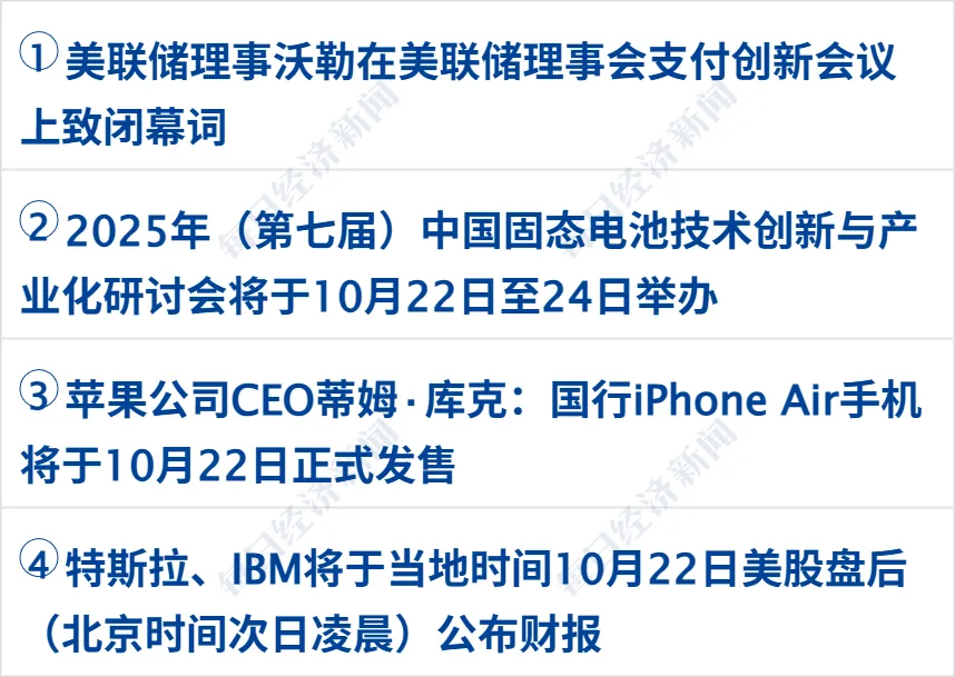 每经编纂 :陈鹏程,王晓波 ![]() ![]() ![]() 1 隔夜市场 美股三大指数收盘涨跌不一 ,道指涨0.47%,标普500指数平收,纳指跌0.16%,其中,道指再创汗青新高;费城金银指数大跌9.57%;大型科技股涨跌不一 ,亚马逊涨超2%,英特尔、苹果、微软、Meta小幅上涨;谷歌跌超2%,特斯拉跌超1%,英伟达小幅下跌;通用汽车涨近15%,创最近五年来最佳单日体现;“人造肉第一股”Beyond Meat大涨超146%,近三个交易营业 日累计涨幅约600%。纳斯达克中国金龙指数跌0.97%,中概股多半 下跌;阿里巴巴跌近4%,京东、名创优品跌近3%,百度跌超2%;哔哩哔哩逆势涨近6%。 国际金银大幅收跌,现货黄金大跌5.31%,报4124.36美元/盎司,盘中一度跌超6%,最低报4080.87美元/盎司,创自2013年4月以来的最大单日跌幅;现货白银跌7.11%,报48.67美元/盎司,盘中一度创下自2021年以来的最大跌幅;COMEX黄金期货收跌5.07%,报4138.5美元/盎司;COMEX白银期货收跌6.27%,报48.16美元/盎司。 国际油价集体走高,美油主力合约涨0.98%,报57.58美元/桶;布伦特原油主力合约涨1.0%,报61.62美元/桶。 欧洲三大股指收盘小幅上涨,德国DAX指数涨0.29%报24330.03点,法国CAC40指数涨0.64%报8258.86点,英国富时100指数涨0.25%报9426.99点。 2 外交部:中方在处置惩罚中美经贸题目上的态度是一贯的、明白的 10月21日,外交部发言 人郭嘉昆主持例行记者会。有记者就中美经贸会商提问。郭嘉昆表现,中方在处置惩罚中美经贸题目上的态度是一贯的、明白的,关税战、贸易战不符合任何一方的长处,双方应该在同等、恭敬、互惠的底子上协商解决有关题目。(央视新闻) 3 商务部部长王文涛与荷兰经济大臣卡雷曼斯通话 10月21日,商务部部长王文涛应约与荷兰经济大臣卡雷曼斯通话,双方围绕安世半导体等题目交换看法 。王文涛表现,中方高度重视中荷经贸相助。荷方针对安世半导体采取的有关步伐,严峻影响全球产供链稳定。中方敦促荷方从保护 全球产供链安全稳定的大局出发,秉持契约精神和市场化、法治化原则,尽快妥善解决题目,保护中国投资者合法权益,营造公平 、透明、可预期的营商情况。卡雷曼斯表现,荷方高度重视荷中经贸关系,愿与中方亲密 沟通,为安世半导体题目探求建立性的解决方案。(商务部网站) 商务部部长王文涛与欧盟委员会贸易和经济安全委员谢夫乔维奇举行视频谈判 10月21日,王文涛部长应约与欧盟委员会贸易和经济安全委员谢夫乔维奇举行视频谈判,就出口管束 、欧盟对华电动汽车反补助 案等中欧经贸重点议题深入 交换看法 。王文涛表现,关于稀土出口管束 题目,中方近期步伐是依法依规完善中国出口管束 系统 的正常做法,体现了中国保护 天下和安稳定的大国继续。中方致力于保护 全球产供链安全稳定,不停为欧盟企业提供审批便利。关于安世半导体题目,中方果断 否决 泛化“国家安全”概念,希欧方施展 紧张的建立性作用,敦促荷方坚持契约精神和市场原则,从保护 全球产供链安全稳定的大局出发,尽快提出妥善解决办法 (商务部网站) 4 各地最低工资标准公布 克日,人力资源和社会保障部网站公布 天下各省、自治区、直辖市最低工资标准情况(停止2025年10月1日)。从月最低工资标准看,上海以2740元的标准居天下首位;从小时最低工资标准看,北京以27.7元的标准为天下最高。 5 国资委公布 5户中心企业外部董事职务变动 10月21日,国资委网站公布 5户中心企业外部董事职务变动信息。其中,聘任葛小春为中国核工业集团有限公司外部董事,欧阳谦不再担当中国核工业集团有限公司外部董事职务;聘任张逢春为中国航天科工集团有限公司外部董事;聘任周渝波为中国电信集团有限公司外部董事;聘任张建恒为中国卫星网络集团有限公司外部董事;聘任丁绍斌为中国第一汽车集团有限公司外部董事。 6 2025年前三季度国内居民出游人次49.98亿 10月21日,文化和旅游部发布2025年前三季度国内旅游市场数据情况。依照 国内居民出游抽样观察统计结果,2025年前三季度,国内居民出游人次49.98亿,比上年同期增长7.61亿,同比增长18.0%。其中,城镇居民国内出游人次37.89亿,同比增长15.9%;农村居民国内出游人次12.09亿,同比增长25.0%。2025年前三季度,国内居民出游耗费4.85万亿元,比上年同期增长0.50万亿元,同比增长11.5%。其中,城镇居民出游耗费4.05万亿元,同比增长9.3%;农村居民出游耗费0.80万亿元,同比增长24.0%。 7 北交所首单中恒久科技创新公司债券成功刊行 据北交所10月21日新闻 ,2025年10月17日,北京中关村资源基金管理有限公司成功刊行 北交所首单中恒久科技创新公司债券。本期债券由银河证券担当牵头主承销商和簿记管理人,国泰海通担当联席主承销商,刊行 规模5亿元,限期为5年,刊行 利率2.29%,创本年9月份以来天下同限期、同评级债券刊行 利率新低。浦发银行、华夏 银行、兴银理财、北京银行、杭州银行、恒丰银行、银河证券等多家金融机构到场认购。 8 我国氢氧火箭发动机试车成功 据中国运载火箭技术研究 院新闻 ,克日,长征八号甲运载火箭YF-75DB氢氧发动机顺遂完成鉴定试车。此次试车严格依照 四倍工作循环流程开展,自9月22日起,历经4次试车共9次焚烧 ,覆盖差别工况,全面 验证了发动机在繁芜 条件下的工作机能 、布局靠得住 性及各组件工作顺应性。本次试车的顺遂完成标志着该型发动机正式进入工程应用阶段。(央视新闻) 9 上海印发建筑业高