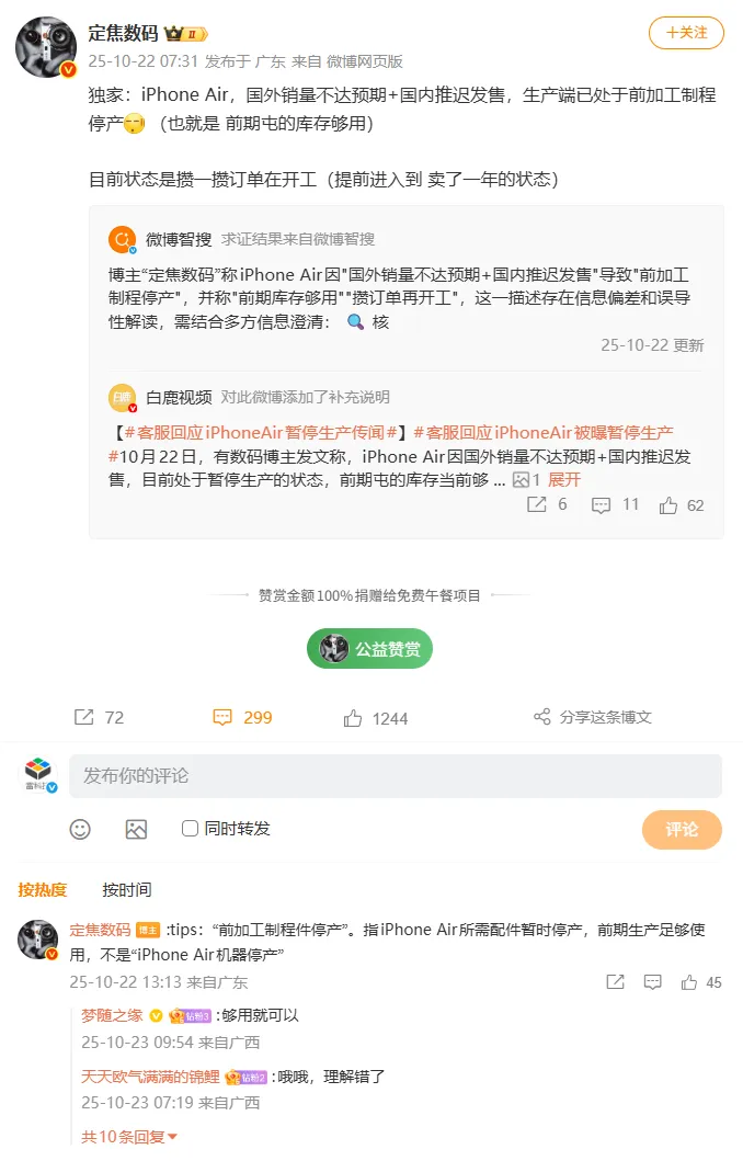 10 月 23 日新闻 ,苹果那刚蹦出来没多久的 iPhone Air,居然停产了。小雷实在早有预见 ,但真听到“准停产”的新闻 时,照旧忍不住想说,苹果这波是真没摸透咱们用户想要啥。海外 那里,iPhone Air 预售库存开端 堆积,
