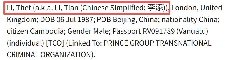 公告说话岑寂,但联合一周前的公开信息,可以发现这名离职高管正是克日被美国财务部制裁的太子团体CFO李添。