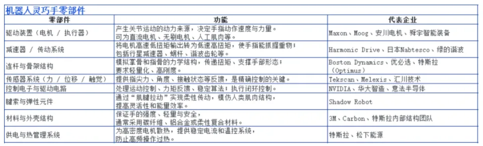 故事层面,特斯拉的市值包罗了市场对机器人的预期。 特斯拉现在市值有1.4万亿,这是什么概念?去年特斯拉卖了178.9万辆车,丰田卖了1080万辆,是特斯拉的6倍;比亚迪卖了427万辆,是特斯拉的2.4倍。而丰田汽车总市值2632亿美元,不到特斯拉的两成;比亚迪市值9462亿人平易近 币(折合美元1212亿),不到特斯拉的约非常之一。 显而易见,这份市值不是给一个车企的,是给一个科技企业的。 特斯拉说的没错,在机器人供给 链和量产本事上,他们已经全球领先。机器人量产、需求层爆发的话,特斯拉相称于二次创业成功。是以 岂论是特斯拉照旧市场都不会错过这场“危险又迷人”的豪赌。 2、被困住的手 特斯拉在帕洛阿尔托的总部已有Optimus在全天候行走,“他以致可以给你带路”,马斯克在财报集会上说道。 “但关键的问题是手”。 北京年夜 学专门做机器人系统研发的张博告诉《豹变》,“体积小、运动度年夜 是机灵手量产困难的核心原因 。” 张博说,“汽车四个轮子互相自力 ,只须要把一个物体在二维空间从点移动到点,而手的标的目标 是完全三维的,手指之间每个关节之间的链接都有关系,是以 造手比造车难度都要年夜 许多。” 让一只机灵手动起来离不开几个核心零部件:电机、减速器、连杆骨架、传感器以及热管理。 电机嵌在手掌或前臂中,负责提供扭转 力。但电机输出的转速太高、扭矩太小,还须要经由过程 减速器把力量 放年夜 ,特斯拉的Optimus手臂内就有多组谐波减速器,险些每个关节都须要一个。 动力传到关节后,还要有骨架与连杆系统,让“指骨”能传导力量 。人每只手有14块骨头,机器人手则用钛合金、碳纤维或轻质铝件来模拟这些结构。骨架不仅要蒙受负载,还得坚持 轻量,否则 手臂无法均衡。 这些机械系统要真正“动得准”,离不开神经系统——传感器与掌握 电路。每个关节上有角度传感器,指尖有力传感器,有的以致带有触觉阵列,能感知压力分布 与滑动趋向 。
