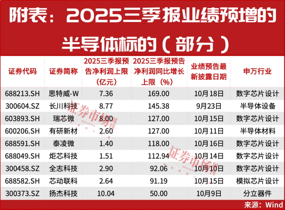 文丨水岸 在重年夜 利好政策、涨价、三季报业绩预增等多重身分 刺激下,半导体财产链在本周五(10月24日)迎来发作性年夜 涨,存储芯片年夜 涨超5%。涨停板个股批量涌现 ,寒武纪-U等龙头股重返年夜 涨,股价已经靠近此前高点。与此同时,多只半导体主线投资基金当天算 夜 涨超5%…… 该图片可能由AI天生 ![]() 半导体经过此前的调解,叠加重磅利好的刺激,正在开启新一轮的上涨,那么问题来了,如今“上车”还来得及吗?哪类公司还能涨?对此,大家 可见文内股市资深专业人士边惠宗的视频内容“芯片股团体涨停后,下一波上涨龙头可能在这几年夜 标的目的 !”与笔者从半导体财产链角度梳理的文末“章建平已年夜 赚38个亿?别再错过这一轮牛市加快机会了!”。 芯片股强劲暴涨 个股掀起批量涨停潮 10月24日,指数年夜 涨,半导体财产链迎来扎堆涨停潮,当天,创业板指年夜 涨3.57%,进一步建立了向上拐点。其余 ,沪指则以0.71%的涨幅继续创出新高。在之前的内容里,笔者提及 在此次 (10月13日)指数破位后,市场可能又迎来了一次绝佳的低吸机会,在当天涌现 年夜 逆转后,接下来新一轮行情可能就要来了。在10月16日笔者指出,若市场在此之后继续展开修复,那么这很有可能是一轮周期相对较长且力度相对较年夜 的修复。之后市场也非常共同,现在来看,这种修复行情正在加快。 在10月16日当天的内容里,笔者即重点体现,分化后也别迷失落 标的目的 ,包罗半导体等在内的几年夜 主线另有机会。从10月24日的盘面来看,半导体可以说成为了最具赚钱 效应的主线,半导体以及细分财产链均迎来团体年夜 涨,此中,存储芯片年夜 涨超5%,位列260余个概念板块涨幅Top1。MCU芯片(微控制器)、先进封装、汽车芯片、第三代半导体等均强势反弹。 个股更是掀起了涨停潮,笔者梳理强势股团体分属于以下几类:1)强势发作力涨停类,如科翔股份、普冉股份等扎堆斩获“20cm”涨停,盈新发展 10月20日~10月24日斩获5个连续涨停,短期累计年夜 涨超60%。2)形成中长期多头趋向 且加快立异 高类,如香农芯创(同收出“20cm”涨停)、江波龙(涨超16%)等。3)重返年夜 涨的年夜 市值龙头股,如寒武纪-U在10月24日一度年夜 涨超10%,已经靠近8月尾1595.88元/股的高点。很显然,在多财产链、多重维度概念股强势年夜 涨背后,半导体新一轮多头机会已经开启。 在半导体板块强劲上涨背后,有多项刺激身分 加持,此中有一项非常重磅,即二十届四中全会公报提出了“十五五”时期经济社会发展 的重要目标,高质量发展 取得显著成效,科技自主自强水平年夜 幅进步。 除了上述政策端利好的驱动,半导体板块强劲上涨背后另有财产端的刺激,如存储涨价带来的半导体机会。在9月15日,大家 的老朋友——边惠宗即明确体现,存储代价 妥当苏醒 的态势比力凸起 ,利基存储供应 缺口导致NOR\SLC NAND呈温和上扬态势。而且,主流产品代价 上涨窗口也已开启,市场预期后续这些会调涨20%~30%,从存储涨价规律 来看,这轮涨价趋向 或持续增强。 对于半导体的投资机会,边惠宗有长期且深刻 的研究与跟踪,其在此前以及近期均多次重点分析了半导体、存储的投资机会,其余 ,其在《边学边做》中涉及的不少标的都在厥后 完成了低位启动加快上涨,如在9月22日涉及的聚辰股份(10月24日最高上涨超12%)、7月4日涉及的拓荆科技(10月24日最高上涨超13%)等,均在厥后 走成强势牛股(见图1、图2)。 ![]() ![]() 作为这轮牛市的核心主线之一,半导体有财产、长期与中短期等多重利好身分 驱动,半导体正在迎来最新一轮的上涨机会。那么重点来了,半导体接下来怎么布局?怎么挖掘下一只股价处于低位且后续有长期上涨潜力的“拓荆科技”?对此,边惠宗有视频详细分析,并就怎样挖掘个股低位反转要点举行了重点讲解。 半导体个股三季报扎堆预增 近七成个股业绩翻倍 在当前三季报窗口期,多家半导体公司宣布 了业绩预告,受益于半导体市场需求增长、订单增加等,多家公司业绩出现超预期增长。 据Wind统计显示,截至10月24日,165只半导体标的中,有9只个股宣布 了本年三季报业绩预告,此中,9只个股业绩均为预增,思特威-W、长川科技等6只个股预增幅度上限均高出100%,占比近七成。 从驱动业绩的逻辑来看,多为受益于下游财产拉动带来的根本面改良 ,如长川科技,公司业绩预增145.38%,对于业绩预增缘故原由, 其体现半导体行业市场需求持续增长,公司客户需求茂盛,产品订单充裕 ,销售收入同比年夜 幅增长,使得利润同比年夜 幅上升。 泰凌微的业绩增长逻辑也与长川科技雷同 ,其三季报最高预增118%,其体现,业绩厘革重要受以下三方面缘故原由影响:1、新品增速显着,端侧AI产品在客户侧实现发作增长;2、研发投入继续加年夜 ,在客户侧不断完成产品导入,积累业绩增长势能;3、销售规模效应已经形成,本钱持续优化提升了产品竞争力。有关更多业绩增长的半导体公司名单,大家 可见附表。 ![]() 除了业绩增长、根本面改良 ,半导体财产也迎来了一众机构调研关注,如中信建投,其在10月最新调研了汇成股份、星宸科技等半导体财产公司。在调研中,汇成股份“剧透”称,公司将通过对鑫丰科技计谋 投资及与华东科技创建合作关系的方式布局DRAM封测业务,并持续拓展以3DDRAM为主的存储芯片先进封装业务;星宸科技称,公司上半年已出货550万颗,第三季环比第二季为