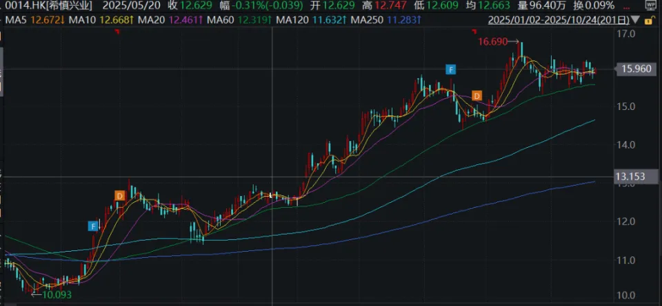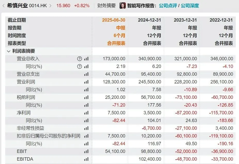 此中买方A(Sharp Focus Limited)付款5639万港元购买单位1,由非执行董事利干老师伉俪 全资拥有。买方B(Nicolas Hugh Ingram 老师)付款7723万港元购买单位2、单位3,为公司主席利蕴莲女士 儿子。 ![]() 另据Wind数据,希慎兴业中期业绩体现,2025年上半年公司营业 额17.3亿港元,同比增加2.19%;股东应占溢利7500万港元,同比淘汰82.44%。 2024年,公司录得股东应占利润3500万港元,上年同期亏损8.72亿港元,扭亏为盈;总营收34.09亿港元,同比增长6.2%。 ![]() ![]() 值得一提的是,今年 希慎兴业股价累涨超46%。停止发稿,公司股价报15.96港元,市值约为164亿港元。