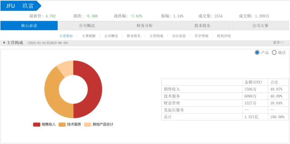 继2024年扭亏为盈后,玖富又交出了一份亮眼半年报。10月3日,玖富颁布 的2025年上半年未经审计的财政业绩表现,报告 期内,该公司实现营业收入1.52亿元,较2024年上半年的1.43亿元增加 6.5%。 此中,销售收入收入为759