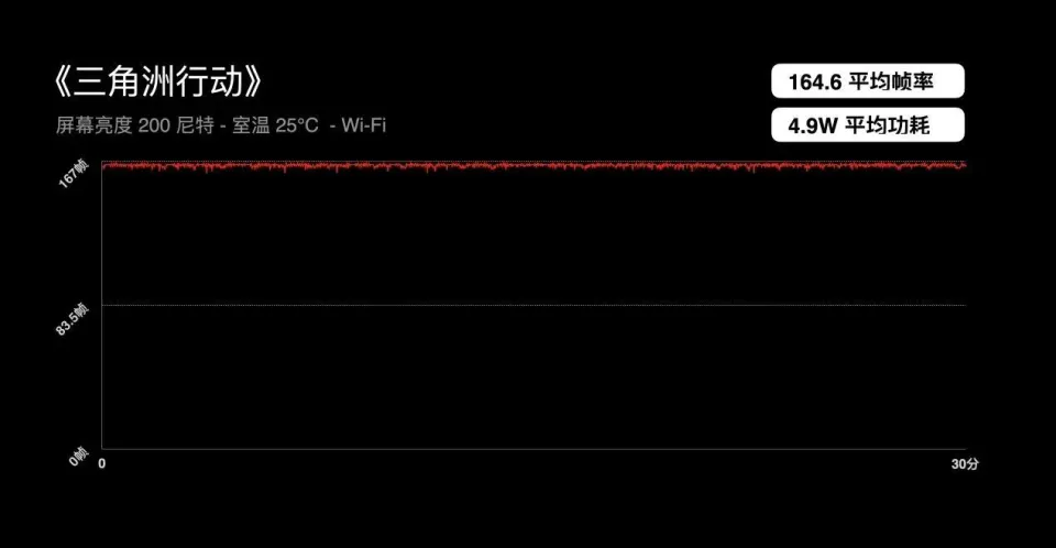 。屏幕黑边做到了 1.15mm 超窄四等边,一眼看上去是真的舒服。共同最高的 LPDDR5x Ultra 和 UFS 4.1,以及自家的「风驰游戏内核」。跑已经适配了原生 165 帧的《三角洲举措》,半小时下来平均帧率 164.5fps,平均功耗控制在 4.3W。虽然