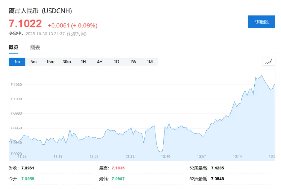 在特朗普发表讲话后,市场走势有所逆转,标普500指数期货和纳斯达克指数期货从下跌转为持平。 ![]() 现货黄金涨幅涨幅一度扩年夜 至1%,但随后涨幅收窄,现至0.61%。 ![]() 离岸国民 币变动不年夜 ,最新报7.1022元兑1美元。 在岸国民 币变动不年夜 ,最新报1美元兑7.0970元国民 币。 ![]() 欧洲部门股指期货震惊 小幅走高。欧洲斯托克50指数期货最新上涨0.05%。德国DAX指数期货扭转跌势,上涨0.1%。 |