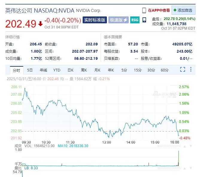 英伟达报202.49美元,跌幅0.20%,市值49205.07亿美元。消息面上,CEO黄仁勋完成了一项预先安排的股票出售计划,自6月下旬以来累计套现超过10亿美元。据10月31日披露的文件,黄仁勋完成了末了一笔2.5万股的出售。这项生意营业 是他于今年3月制定的一项计划的收尾,该计划旨在岁尾 前出售至多600万股股票。 黄仁勋的大规模减持并非孤例。数据表现,随着股价屡立异 高,英伟达及其他受益于人工智能浪潮的公司内部人士正在加快出售股票。