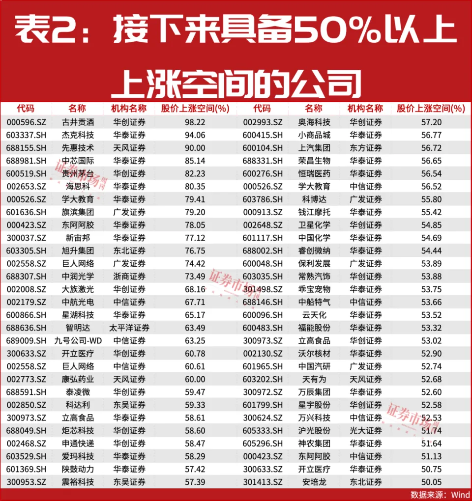 文丨牛犇 时隔十年,A股又进入了新的平台,4000点。近期,在中美关系频传利好等配景下,沪指开端 围绕4000点重复 震荡。虽然 周五市场低开,但在业内子 士看来,牛市还远未结束 。 与此同时,据笔者不美观 察,年内已有超八成的A股实现了上涨,按照牛市三步走的预期,还将有更多的公司实现上涨。而结合研究 机构对一些公司远超最新收盘价的评级来看,将来的领涨主力很年夜 概就会在这些公司中产生(具体名单详见文内)。 年内4400多只个股上涨 2025年以来,A股市场震荡上行,截至10月30日收盘,4400多只个股收涨,上涨比例超八成。从上涨标的目标 看,出现明显 的布局性行情,科技成长 板块的表现尤为亮眼。从行业角度看,电子、通信、计算机等科技成长 板块涨幅居前。 个股方面亦是如此,从上纬新材到胜宏科技,再到鼎泰高科,市场赚钱效应会合在科技成长 这一特定赛道(见表1)。 ![]() 其中,上纬新材的惊人表现尤为惹人 注目。其曾在7月的10个生意业务日走出涨停行情,一举刷新A股“20cm”连板的记录,股价也从7月9日收盘的每股9.34元飙升至30日收盘的92.07元,累计涨幅高达1083.42%,成为2025年以来A股首只十倍股。这一涨势源于7月8日的一则通知布告 ,具身智能企业智元呆板人计划经由进程 协定 让渡 与要约收购相结合的方法 ,谋求公司掌握 权。 胜宏科技、鼎泰高科则都是PCB(印制电路板)的代表企业。其中,胜宏科技今年前三季度实现归母净利润32.45亿元,同比增加 324.38%,鼎泰高科实现归母净利润2.82亿元,同比增加 63.94%。 对此,曾发掘多只上述翻倍牛股的《解密行业龙头》主讲人彭祖近期表现,本轮牛市分为三个阶段,第一个阶段是2600点到4000点的慢牛培养期,第二个阶段是4000点到5100点的巩固期,第三个阶段是5100点以上简直认期。“(A股)能不克不及 更高或形成疯牛还必要市场的造化,必要更多的故事。”彭祖如是说。 在本周三的视频中,彭祖就牛市三段论举行了详细拆解,并枚举多只焦点案例,年夜 家感兴趣的可以识别下方二维码,点击“到场学习 ”即可免费从视频中获取。 53只个股有50%以上上涨空间 牛市第二阶段呼之欲出,机构研究 职员也加紧了对上市公司的评估和推测。根据最新研报数据,现在有53只个股被机构认为具备50%以上的上涨空间,这些被看好的公司包围 了科技成长 板块的多个行业。 如天下领先的集成电路晶圆代工企业中芯国际,其即获得了华泰证券的“买入”评级。在其看来,以华为为代表的国产AI芯片密集的宣布 有望动员国内先辈工艺代工需求快速增加 。同时,国产替换有望使得包含 中芯国际等在内的国内代工企业份额提升。是以 ,给予公司238元的目标价,这比较 公司的最新收盘价有85.14%的上涨空间。 头部研究 机构中信证券则评估和推测了多只科技成长 股,如中航光电、九号公司-WD、伟人 收集 等(见表2)。 ![]() 事迹 集团 年夜 增 彭祖在视频中指出,“跟着 国家 队和产业资金的深刻 ,市场以龙寡头事迹 为焦点的炒作开端 主导市场。”而这些有50%以上上涨空间的个股普遍是绩优股,这也印证了其股价上涨的潜力。 据笔者梳理,现在这53只个股有51只宣布 了2025年三季报,其中实现盈利的有49只,37只实现了事迹 的同比增加 。 具体来看,事迹 增幅最高的是智明达,公司专注于尖端高靠得住 性嵌入式计算机,产品普遍 运用 于飞机、导弹、卫星、火箭、无人体系等高端设备 。陈诉期内,随客户需求年夜 幅增加,公司相关产品订单出现年夜 幅增加 ,实现归母净利润0.82亿元,同比增加 995.37%。 其余 ,事迹 增幅实现翻倍的公司尚有万辰集团 、震裕科技、泰凌微、炬芯科技(见表3),从基本面来看,其中泰凌微主营IOT芯片、音频芯片,炬芯科技主营蓝牙音频SoC芯片系列等。 ![]() (文中说起 个股仅为举例分析 ,不作生意业务推荐 。) |