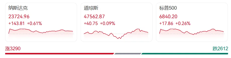 11月1日,美国当局“停摆”满月。 本地时间10月31日,美股三年夜 指数团体收涨,纳指涨0.61%,10月份累涨4.7%;标普500指数涨0.26%,10月累涨2.27%;道指涨0.09%,10月累涨2.51%;此中,纳指月线7连涨,道指、标普5