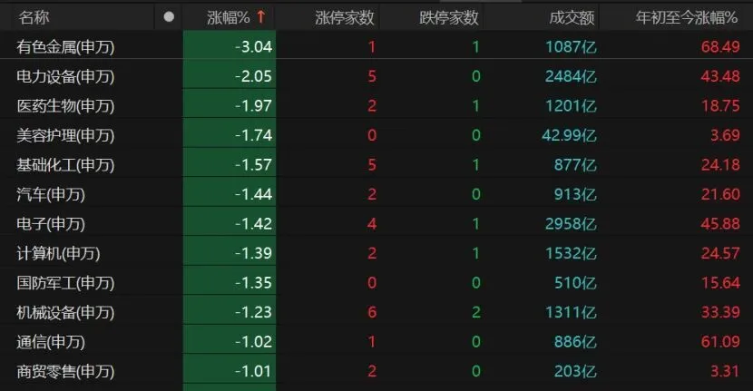 11月4日,A股涌现 “量价齐跌”态势,日成交额跌破2万亿元,创业板指跌近2%。有色金属、电力设备 、医药生物、电子等热门赛道领跌,而银行股则发挥 护盘浸染 。市场共计3650只个股收跌。受访人士表现,在10月制造 业采购