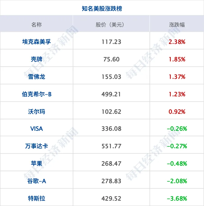 每经编纂 :陈鹏程,王晓波 1 隔夜市场 美股三大指数收盘涨跌不一,终结 此前周线三连涨,纳指跌0.21%,本周累跌3.04%;标普500指数涨0.13%,本周累跌1.63%;道指涨0.16%,本周累跌1.21%;大型科技股涨跌不一,特斯