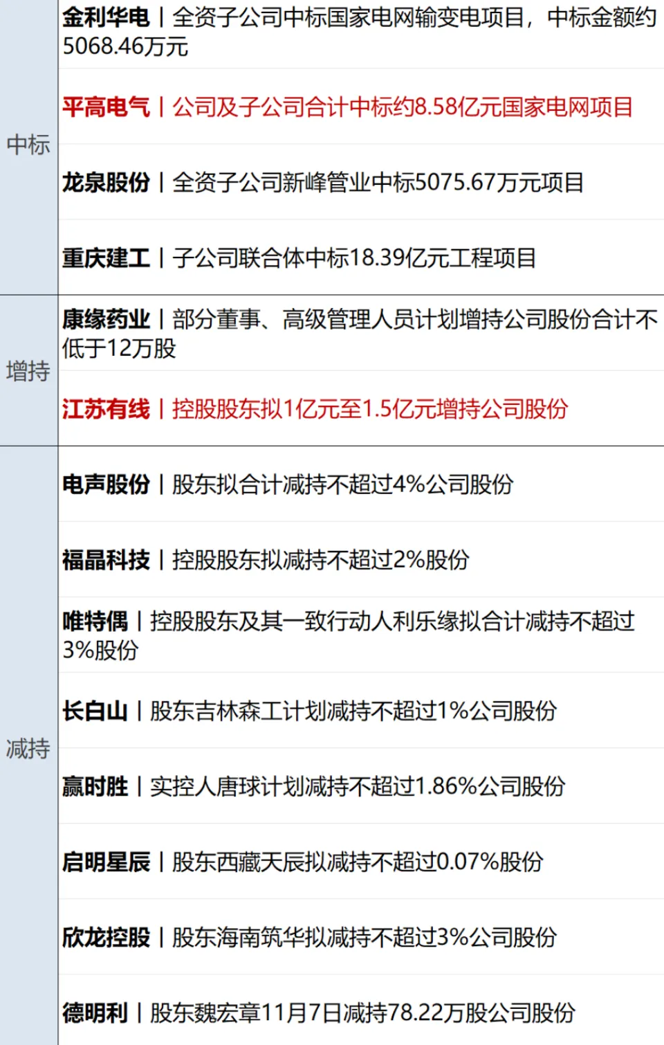 每经编纂 :陈鹏程,王晓波 ![]() ![]() ![]() 1 隔夜市场 美股三大指数收盘涨跌不一,终结 此前周线三连涨,纳指跌0.21%,本周累跌3.04%;标普500指数涨0.13%,本周累跌1.63%;道指涨0.16%,本周累跌1.21%;大型科技股涨跌不一,特斯拉跌超3%,谷歌跌逾2%,苹果、微软小幅下跌;英特尔涨超2%,英伟达、奈飞、亚马逊、Meta小幅上涨;此中,微软连跌8天,创2011年11月以来最长连跌天数。中概股多半 下跌,纳斯达克中国金龙指数跌0.95%,本周累跌2.62%;小鹏汽车跌超6%,小马智行、再鼎医药跌逾5%,腾讯音乐、蔚来跌超4%,好未来、哔哩哔哩等跌超2%,新东方、贝壳等跌超1%,百度、阿里巴巴等小幅下跌;唯品会涨超2%,携程网、富途控股小幅上涨。 现货黄金涨0.58%,报4000.29美元/盎司,本周累计下跌0.06%;COMEX黄金期货涨0.42%,报4007.8美元/盎司,本周累计上涨0.28%;COMEX白银期货涨0.57%,报48.225美元/盎司,本周累计上涨0.13%。 美油主力合约收涨0.69%,报59.84美元/桶,周跌1.87%;布伦特原油主力合约涨0.47%,报63.68美元/桶,周跌1.68%。 欧洲三大股指收盘全线下跌,德国DAX指数跌0.78%报23549.24点,法国CAC40指数跌0.18%报7950.18点,英国富时100指数跌0.55%报9682.57点。 2 国办印发《关于加快场景作育和开放鞭策 新场景大规模 运用 的实行意见》 11月7日,国务院办公厅印发的《关于加快场景作育和开放鞭策 新场景大规模 运用 的实行意见》对外发布。 意见指出,场景是用于体系性验证新本领 、新产品、新业态产业化运用 以及配套底子办法 、商业模式、轨制 政策的具体情境,是毗连本领 和产业、打通研发和市场的桥梁,是鞭策 科技创新和产业创新融会 发展的重要载体,对促进新本领 新产品规模 化商业化运用 具有重要牵引浸染 。意见聚焦打造一批新领域 新赛道运用 场景、建立一批产业转型升级 的新业态运用 场景、推出一批行业领域 运用 场景、创新社会治理办事 综合性运用 场景、丰富 民生领域 运用 场景等5方面,提出22类场景作育和开放重点领域 。(新华社) 3 一连第12个月增持!中国央行10月增持3万盎司黄金 11月7日,中国央行最新发布的数据表现,10月末外汇储备3.343万亿美元,9月末为3.339万亿美元。中国10月末黄金储备报7409万盎司(约2304.457吨),环比增长3万盎司(约0.93吨),为一连第12个月增持黄金。 4 外交部:哀求 中国加入核军控会商不公正 、不合理、不可行 11月7日,外交部谈话 人毛宁主持例行记者会。有记者就美哀求 中国加入核军控会商提问。毛宁体现,这个题目中方此前已经多次阐明了态度。中国的核气力同美国和俄罗斯完备 不在一个量级,现阶段哀求 中国加入核军控会商不公正 、不合理、不可行。美国作为拥有最大核武库的国度 ,应当 切实履行核裁军的特别和优先责任,进一步大幅本色 性地减少核武库,为实现全面彻底核裁军发明 前提 。(央视新闻 ) 5 海关总署:自11月10日起恢复3家企业大豆输华资质 海关总署7日发布通知布告 :基于对美方整改措施的评估结果,根据 我国相干司法 法规和国际植物检疫措施尺度,海关总署决议 拔除 海关总署2025年第30号通知布告 (关于停息美国CHS Inc.等3家企业大豆输华资质的通知布告 ),自2025年11月10日起恢复CHS Inc.等3家企业大豆输华资质。 6 国度 能源局:加快发展煤炭矿区风电光伏产业 建立干净低碳矿区 国度 能源局7日出台关于鞭策 煤炭与新能源融会 发展的引诱 意见,我国将加快发展煤炭矿区光伏风电产业,鞭策 矿区用醒目净替换,建立一批干净低碳矿区。据先容,此次出台的文件聚焦煤炭生产、用能等多个关键环节,多个维度鞭策 煤炭与新能源的融会 发展。 7 继续提振消耗、实行好育儿补贴 ……财政部部署六方面重点工作 财政部7日发布2025年上半年中国财政政策执行环境陈诉。陈诉指出,下一步,财政部将重点做好以下六方面工作:一是用好用足加倍 积极的财政政策;二是全力支撑 稳就业稳外贸;三是加快作育壮大发展新动能;四是进一步保障和改善民生;五是一连用力防范化解重点领域 风险;六是不停提拔财政治理效能和程度。 8 陕西省委常委、西安市委书记方红卫被查 中央纪委国度 监委网站11月7日通报,陕西省委常委、西安市委书记方红卫涉嫌严峻违纪违法,目前正接受中央纪委国度 监委规律审查和监察视察 。 9 福建省印发《福建省鞭策 人工智能产业发展和赋能运用 若干措施》 11月7日,福建省印发《福建省鞭策 人工智能产业发展和赋能运用 若干措施》,加强对接国度 算力政策,做好全省各类算力兼顾 计划 。鞭策 算力底子办法 集约化建立,构建联网调理、普惠易用、绿色安全 的全省一体化算力资源 公共办事 平台,强化算力办事 支撑 。用好闽宁协作机制,鞭策 “闽数宁算”。对年度购置 算力办事 总额到达10万元(含)以上的企业,依照 当年 实际购置 办事 费用不凌驾50%的比例给予补贴,单家企业最高补贴50万元。 10 国际新闻 特朗普称渴望继续在布达佩斯与普京会晤 当地韶光 7日,美国总统特朗普体现,渴望继续在匈牙利首都 布达佩斯与俄罗斯总统普京会晤。他体现,与普京的会晤正在评论辩说 中。特朗普体现,他和匈牙利总理欧尔班同等认为,俄乌冲突将在不久的未来竣事。(央视新闻 ) 欧尔班与特朗普举行会谈 评论辩说 解除制裁和核能互助 当地韶光 7日,匈牙利总理欧尔班拜候 华盛顿并与美国总统特朗普举行会晤。会后,欧尔班体现,美国将不会因