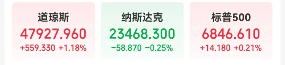 每经编辑:杜宇 当地时光 11月11日,美股三大指数收盘涨跌不一,道琼斯指数涨1.18%,标普500指数涨0.21%,纳斯达克综合指数跌0.25%。