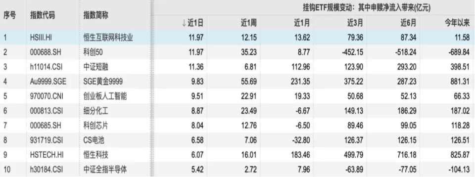 逆势布局,另一方面持续向黄金板块集中。防御与进攻的平衡成为当前市场核心逻辑,以恒生科技、港股互联网为代表的跨境 ETF逆势吸金。从申赎净流入核心指标看,差别韶光