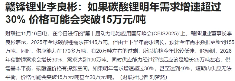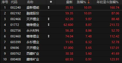 ![]() 受相关新闻 提振,本日碳酸锂期货涨停,A股锂矿板块暴涨,盛新锂能、融捷股份涨停。 ![]()
