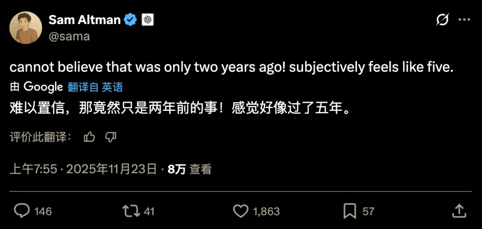 摘下了看起来永远也摘不下的OpenAI工牌。 对于OpenAI来说,2025年的这个十一月冷得有些刺骨。 就在本日,奥特曼在X上发了一条推文,纪念他两年前那场震动硅谷的「被解雇又闪电回归」的大戏。 他写道:「难以置信,那已经是两年前的事了!以为