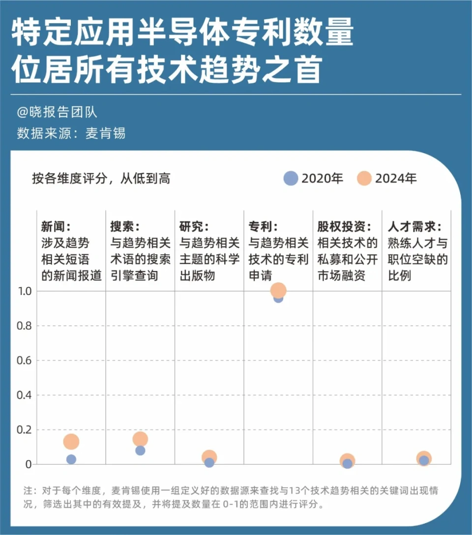 “未来的竞争,不再是单个技能点的突破,而是生态体系的竞争、人才体系 的竞争、代价观的竞争。” ![]() 文 / 巴九灵 从蒸汽机的轰鸣到互联网的无声革命,技能的海潮总在不经意间重塑天下的面目。 而今,我们正站在一场更为汹涌的科技变革前夕 ——人工智能学会了“思索”,死板 人走出了工场 的围墙,半导体开始成为智能时代的“新石油”,而太空正从遥不成 及的空想酿成新的贸易领土。 站在当下看,哪些技能将定义下一个五年甚至十年? 麦肯锡最新宣布 的《2025年技能趋向 推测》报告 试图解答这个题目 ,提出了13项具有转变 环球贸易潜力的前沿技能趋向 ,并从立异 性、存眷 度、资源投入与运用 水平四个维度,绘制出这些技能的发展蓝图。 ![]() 放眼望去,资源正高度会合于AI、未来能源与可持续技能、未来出行等从技能突破迈向运用 深水区的范畴,此中AI不管是在存眷 度和立异 上均遥遥领先。 相比 之下,特定运用 半导体、先进连接技能、未来生物工程、云与边缘盘算、数字信任与收集 平安 这些技能虽热度不及AI,却已寂静成为数字社会运转的“底子办法”,运用 程度已靠近范围 化。 而沉浸式实际技能、未来空间技能、未来死板 人技能、量子技能、AI智能体等技能仍处于孵化阶段,但革命性潜力已现端倪。比如AI智能体成为本年增速最快的热门趋向 之一,2024年股权投资达11亿美元,同比增加 1562%。 ![]() 旅行 者经过进程 AR眼镜体验云冈石窟 事实上,不管是哪项技能趋向 ,都将重塑产业面目,更已成为国家与企业不成 或缺的竞争筹码。 在中国,这些技能已被囊括在面向2035年的未来产业重点赛道目次之中,并列出了明白的发展目的。以未来空间为例,2030年中国市场范围 有望突破8000亿元,重点发展标的目的 包罗载人低空翱翔 、深空深地深海探索 、极地开辟等。 在此,我们梳理了麦肯锡报告 中的关键信息和数据,和年夜 家聊聊这些技能的前沿动态、发展趋向 与人才需求。 ![]() 13个赛道与万亿商机 面对这13项前沿技能,麦肯锡从它们的内在“性格”出发,将其分为三年夜 类:AI革命、盘算与连接前沿,以及尖端工程。 可以说,这三年夜 类技能,一个负责“思索”,一个负责“连接”,一个负责“动手 ”,它们彼此 渗出、彼此 激发 ,不断绘制出未来十年科技海潮的完整图景。 ◎ 第一类,AI革命,包罗AI和AI智能体。伴随AI影响力的持续扩年夜 ,值得注意的是,当前AI的成本在急剧降落,比如一些推理使命的价格一年内降落900倍。 针对这两项细分技能,在麦肯锡看来,AI不仅自己是一项具有革命性和战略 性的技能立异 ,更能加速其他技能范畴的发展,或在交织范畴创造新“商机”,比如AI是特定运用 半导体这项技能的重要催化剂。 而另一项AI智能体技能则是本年的“当红小生”,已经迅速成为企业和消耗技能范畴的重要发展标的目的 。所谓AI智能体,就像是一位“假造同事”,可以自主规划和实行多步调使命。 目前,各年夜 公司正在现有AI产品中增加 智能体功能,或开辟全新的、面向特定使命的运用 ,尤其是在软件编码和数学等拥有强盛训练数据集的范畴取得了快速希望。 ![]() 科年夜 讯飞,具身智能采训推一体机 市场也嗅到了风向。MarketsandMarkets推测,AI智能体市场范围 将从2024年的51亿美元飙升到2030年的471亿美元,复合年增加 率高达 44.8%。 ◎ 第二类,盘算与连接前沿,这些技能可以被理解为是AI与数字天下的“骨架”,包罗特定运用 半导体、先进连接技能、云与边缘盘算、沉浸式实际技能、数字信任与收集 平安 、量子技能。 此中,特定运用 半导体是报告 特别提到的另一项重要趋向 。这些为特定AI使命量身定制的芯片,正在成为科技界的“新石油”——专利数目位居全部技能趋向 之首,客岁吸引了75亿美元的投资。 ![]() 同时,AI的发展对背后的算力有着永不满足的渴求,这就得依赖云与边缘盘算这项技能趋向 。麦肯锡的研讨 表白 ,到2030年,环球对数据中央容量的需求可能会靠近如今的3倍,此中约70%的需求正是来自AI工作负载。 其余 ,在先进连接技能方面,5G已困绕 环球22.5亿用户,中国在5G自力 组网部署上领跑环球,而6G已在路上,还预备带上“传感”等新技能包。至于沉浸式实际技能范畴,AR/VR已从游戏走向医疗、工业设计,苹果Vision Pro、Meta Quest等设备 也在重新定义人机交互;量子技能范畴则虽处前沿,但谷歌、IBM、微软等巨头已在偏差校正与稳定性上取得关键突破。 这些技能就像古代丝绸之路上的驿站和门路,固然不直接产生 货品,却决议 了贸易的范围 和界限。 ◎ 第三类,尖端工程,包罗未来死板 人技能、未来出行、未来生物工程、未来空间技能、未来能源与可持续技能。它们则负责数字能力“实体化”,让技能从屏幕里走出来。 在已往六十年中,死板 人已逐渐成为先进制造业的常客,如今有超四百万台工业死板 人在汽车厂等环境中工作。与此同时,在AI的加速推动下,物理死板 人技能在近年来进入机场、年夜 型市廛 和餐厅等更广泛 的范畴。麦肯锡合伙人Ani Kelkar更是判断,到2040年其市场范围 将高达约9000亿美元。 在未来出行范畴,中国电动车市场逆势增加 36%,自动驾驶、无人机配送和空中出租车也都在从概念走向试点,甚至实现商用落地。估计 到2034年,贸易无人机送货市场范围 将达290亿美元,年复合增加 率高达40%。 未来生物工程技能则