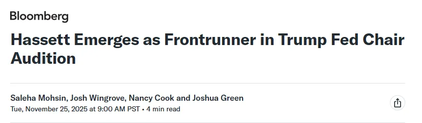层面的不确定性在本周显著上升,焦点来自两个方向: 这两条主线配合 感化 ,使得市场对12月降息的押注在几天之内从30%激烈 攀升至超过80%,成为推动全球资产颠簸的最年夜 因素 。 美联储方面,美国财务部长贝森特周二表现,特朗普估计 将在圣诞节前敲定美联储下一任主席的人选。作为物色候选人的重要负责人,贝森特在担当CNBC采访时透露,目前“仅剩最后一场口试尚未完成”,但他谢绝 就最终候选人表达任何倾向。 贝森特夸大,特朗普有望在圣诞节前做出正式宣布。“当然,这一录用 完整 取决于总统本人的节奏,无论选择在圣诞节前颁布 ,还是延后至新年。”他说道,“但从目前的进展来看,齐备都异常 顺利。” 随着新任美联储主席遴选工作进入最后阶段,白宫国度 经济委员会主任凯文·哈塞特(Kevin Hassett)正快速显现 为下任美联储主席的最有力竞争者。据彭博社援引多名知情人士报道,特朗普总统正在考虑由其长期经济顾问之一接替现任主席鲍威尔,而哈塞特被视为最相符 特朗普政策倾向的人选。 ![]() (泉源:彭博社) 多名熟悉环境的消息人士透露,特朗普将哈塞特视为一位“熟悉、信任 、并能够贯彻总统经济理念”的亲密 盟友。作为白宫国度 经济委员会主任,哈塞特一直与特朗普密相符 作,并在宏不雅 政策方向上保持高度一致。 有知情人士指出,哈塞特之以是在最终名单中脱颖而出,是由于他被认为能够将特朗普主意 的激进降息路线带入美联储这一传统独立机构,而这恰是 特朗普长期以来盼望影响的关键 政策领域 。 共和党内部人士进一步称,哈塞特是“特朗普经济议程的坚强 支撑 者”,特殊是在利率政策上,他一再公开呼吁应更快速、更年夜 幅度地降息。 本月早些时间,哈塞特在担当福克斯消息采访时明确表现,若由本身掌舵美联储,“现在就会降息”,情由 是“数据表现我们应该 这么做”。他已往也多次公开支撑 特朗普认为利率过高、抑制增长的不雅 点。 这一系列旗帜暗号 激发 市场对美联储未来独立性可能受打击的担忧,不少投资者认为,哈塞特若接任,将明显转向更宽松、更相符 特朗普等候的货币政策框架。 对于人选推想 不断升温,白宫消息秘书 Karoline Leavitt 在回应中保持审慎。她表现:“在总统真正做出决定之前,没人知道他会怎么做。请继续关注。” 这一表态也进一步凸显了特朗普决策作风 的不可推想 性。消息人士指出,固然哈塞特目前处于领先位置,但特朗普在关键 人事录用 上“向来 可能在最后时刻改变主意”。 除哈塞特之外,市场关注的其他人选包括: 克里斯托弗·沃勒(Christopher Waller) —— 现任美联储理事,以鸽派著称; 斯科特·贝森特(Scott Bessent) —— 美国财务部长,负责主席物色流程; 凯文·沃什(Kevin Warsh) —— 前美联储理事,常在官场 与华尔街名单中出现。 不过,多位接近决策圈的人士表现,当前的评论辩论 焦点已经明显向哈塞特倾斜。 经济数据方面,尽管美国当局此前停摆导致年夜 量经济数据延长发布,但最新颁布 的两项关键 数据明显强化了对放松政策的预期: 最新颁布 的9月美国零售贩卖增速弱于预期,而因当局停摆被推迟发布的PPI数据表现,批发端通胀仍维持在暖和水平。剖析 认为,能源与食物 代价推动团体PPI走高,但焦点通胀仍旧受控。 数据表现,美国9月零售贩卖月率录得0.2%,逊于预期;9月PPI月率录得0.3%,相符 预期,8月为下降0.1%。 CME的美联储不雅 察对象 (FedWatch)表现,市场对12月降息的押注从上周的30%跃升至85%;对1月降息的概率预期为64%。 美股:AI链条躁动进级 美股强劲反弹在年夜 盘颠簸激烈 的买卖业务日中,美国三年夜 股指震荡上涨。 停止撰稿,标普500指数上涨0.7%,纳斯达克指数上涨0.5%,道琼斯指数年夜 涨1.2%或566点。 ![]() (道琼斯指数1小时走势图,泉源:FX168) 盘中稍早,三年夜 指数一度显著下挫,此中标普500曾跌约0.7%,纳指跌幅超过1%。但AI主题的强劲修复推动指数重新 转涨。 Alphabet(谷歌母公司)领涨年夜 盘,盘中再创新高,此前有报道称 Meta 正考虑斥资数十亿美元采购 Alphabet 的 AI 加速芯片。市场广泛认为,这或表现 AI 计算财产链正在从“GPU一统世界 ”转向更加多元的异构架构。 LNW 首席投资官 Ron Albahary 指出:“算力资本下降会进一步提升需求,而 Meta 购置 谷歌芯片是这一趋向 的直接表现,这将利好全部 AI生态。” 然而,英伟达(Nvidia)股价年夜 跌逾3%,投资者担忧其在AI芯片领域 的主导地位可能受到竞争加剧的寻衅。Albahary表现,更值得关注的是微软与亚马逊等年夜 型云计算企业是否会在新格局中重新 创立 技术向导权。 尽管本周市场反弹,但三年夜 指数仍面对月度下跌风险,科技估值是否支撑 年底反弹仍是关键 争论点。 美元:降息预期压低美元指数 日元干涉 风险连续升温随着市场对美联储降息押注不断升温,美元周二明显承压。 美市盘中,美元指数(DXY)下跌超0.5%至99.67低点;欧元/美元升至1.1580一线;英镑/美元升至1.3200附近。 ![]() (美元指数1小时走势图,泉源:FX168) 尽管上周美元指数一度因避险资金回流而上涨,但降息预期重新 主导汇市,多数剖析 机构认为美元当前水平偏强。 ING 外汇剖析 师 Francesco Pesole 指出,感恩节前的岁终 再均衡资金可能暂时干扰美元走势,但“除非市场重新 定价更鹰派路径,不然 美元仍面对下行压力”。 日元方面,美元/日元下跌约0.6%至155.0。在日本新任宰衡高