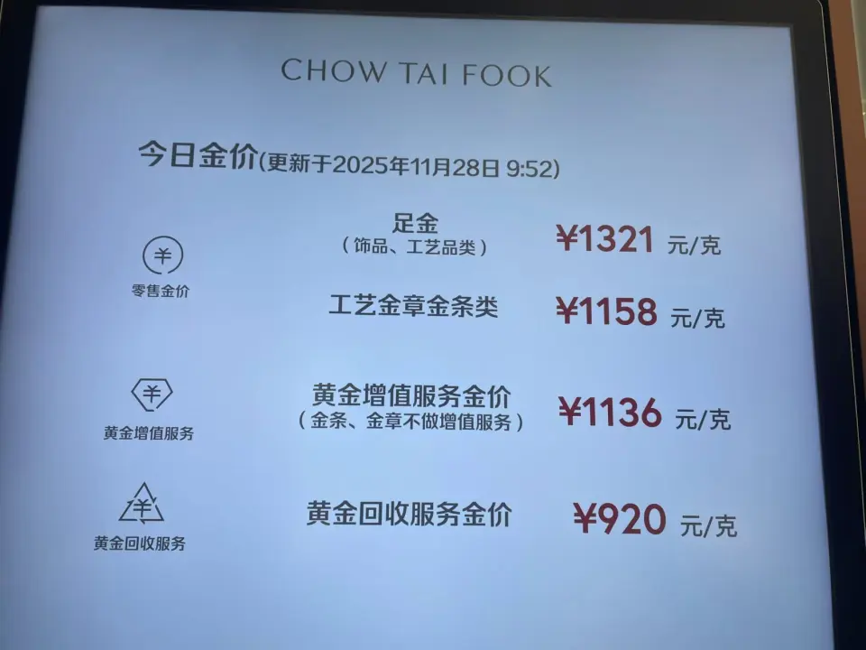 深圳商报·读创客户端记者 周良成 11月28日,港股周大福股价收跌0.80%,报13.65港元/股,该股已连续三日下跌,累计跌幅10.43%。本年以来,周大福股价累计上涨112.95%。本年国际金价大涨,停止11月27日,伦敦现货黄金价格为4,153.95美元/盎司,本年以来,国际金价累计涨幅高达52%。 ![]() 深圳宝安中心壹方城的周大福店。周良成/摄 11月28日,记者以消耗者身份,走进位于宝安中心壹方城的周大福,以及周大福荟馆店,创造 当日金价已高达1321元/克。营业员为记者介绍了高端的“传承系列”,以及与故宫、迪士尼联名的订价款金饰系列。记者创造 ,部门高端产物算入工费,每克价格高达2000元。 ![]() 11月28日周大福金价。周良成/摄 记者以消耗者身份扣问营业员:“本年金价涨了这么多,你们店金饰跟去年比好欠好卖?”营业员告知 记者:“近期金价凌驾1300元/克后,确实有不少顾客存在高价不雅 望。但本年销量并不比去年差,该买的还是会买,而且 越来越多年轻人开端 买金豆子、或金条作为投资。” ![]() 深圳的周大福高端店“周大福荟馆”。周良成/摄 在壹方城的周大福荟馆店,营业员告知 记者:“周大福荟馆是周大福的高端店,店内以古法传承系列等高端金饰为主,包括贩卖金壶、金碗等大型金器,这样 高端门店目前在深圳有十几家,数量并未淘汰。” ![]() 周大福高端产物“传承”系列貔貅金元宝。周良成/摄 周大福于11月25日披露了2026财年中期事迹 报告 (停止2025年9月30日止六个月)。财报显示,周大福实现营业额389.86亿港元,同比降落1.1%;净利润25.34亿港元,同比微增0.1%。毛利率保持 在30.5%,较去年同期31.4%略有收窄。 ![]() 周大福高端产物“传承”系列金凤平安牌。周良成/摄 财报显示,中国当地零售值同比降落1.1%,主要因零售店优化关闭 低效店铺611间,此中直营店关闭 16间,加盟店关闭 595间。平均每天关闭 3家门店。但核心城市体现强劲,一线城市零售值同比增加8.7%,二、三、四线城市别离 下跌1.8%、6.2%、4.8%。而喷鼻 港与澳门市场零售值别离 增加 6.5%与16.7%。 ![]() 周大福金豆子与金条。周良成/摄 业内人士指出:“在金价高企的配景下,黄金消耗出现K字型走势,一线城市以及港澳地区的高收入人群购置 黄金的金额在增加 ,而二三四线城市的市场开端 萎缩。” |