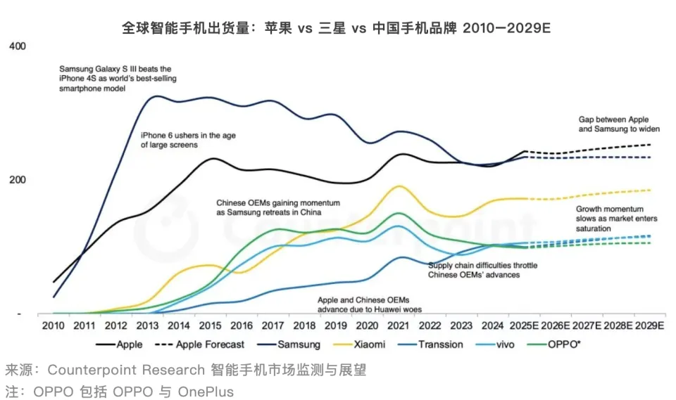 【环球网科技综合报道】11月29日新闻 ,根据 Counterpoint Research 最新的《智能手机市场展望追踪》,预计 2025 年环球智能手机出货量将同比增长 3.3%。苹果的智能手机出货量在 2025 年团体表现强劲,尤其是 Q3。Co
