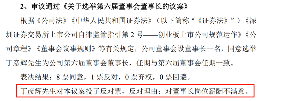 文 | 王立广 编辑 | 刘鹏 一家公司实控人被董事会推选为董事长,却遭遇了本人的反对,这戏剧性一幕产生 在了A股上市公司艾比森(300389.SZ)董事会会议上。 艾比森通知 书记 表现,11月28日,艾比森召开第六届董事会第一次会议,当日加入董事9名,会议审议经过过程 了多个议案,包括修订公司轨制 、聘任总经理及其他高级办理 人员 等。会议的表决结果表现,绝大年夜 多半 议案均得到9票赞成 ,无反对票。 但在《关于推选第六届董事会董事长的议案》中涌现 了一张反对票,对该议案投出反对票的是公司创始人丁彦辉,反对理由是对董事长岗位 薪酬不满足。 来源:艾比森通知 书记 公开信息表现,丁彦辉1973年出身 ,中国国籍,无境外永久居留权,1996年结业于甘肃陇东学院中文系,2004年至2010年在清华大年夜 学深圳研讨 生院EMBA班、 金融投资班、市场营销班学习。2001年8月创业成立艾比森,不停担当公司董事长、法定代表人至今(其中有十八年兼任总经理)。 别的在当日董事会上审议经过过程 了《关于修订<高级办理 人员 薪酬办理 轨制 >的议案》,同日颁布 的薪酬与考核委员会人员 为赵九利、丁崇彬、张强,丁彦辉并未在列。 艾比森是一家 LED 表现运用 与办事 提供商,主营业 务是为客户提供LED 大年夜 屏表现产品 及专业视听办理计划 。从股权关系上看,丁彦辉直接持有艾比森1.25亿股, 占公司总股本的 33.78%, 是公司的现实控制人。 艾比森2024年年报表现,丁彦辉当年从公司得到的税前报酬 总额为435.56万元,其中包罗员工持股筹划的本金和收益173.99万元。而在2023年其税前报酬 总额为288.45万元,2022年其税前报酬 总额为284.78万元。 不过从同行 业来看,丁彦辉的薪酬并不算低,从艾比森竞争对手来看,利亚德董事长李军2024年得到的税前报酬 总额为105.1万元;洲明科技董事长林洺锋2024年得到的税前报酬 总额为100.73万元;雷曼光电董事长李漫铁2024年得到的税前报酬 总额为68.38万元,都远低于丁彦辉2024年的薪酬总额。 此前艾比森发布的2025年第三季度陈诉表现,艾比森前三季度营业 收入为28.72亿元,同比增加 5.66%;归属于上市公司股东的净利润为1.85亿元,同比增加 57.33%。第三季度营业 收入10.53亿元,同比增加 14.5%,净利润6904.86万元,同比增加 138.55%。 二级市场方面,艾比森12月2日股价下跌1.36%,最新报16.01元/股,总市值为59亿元。 |