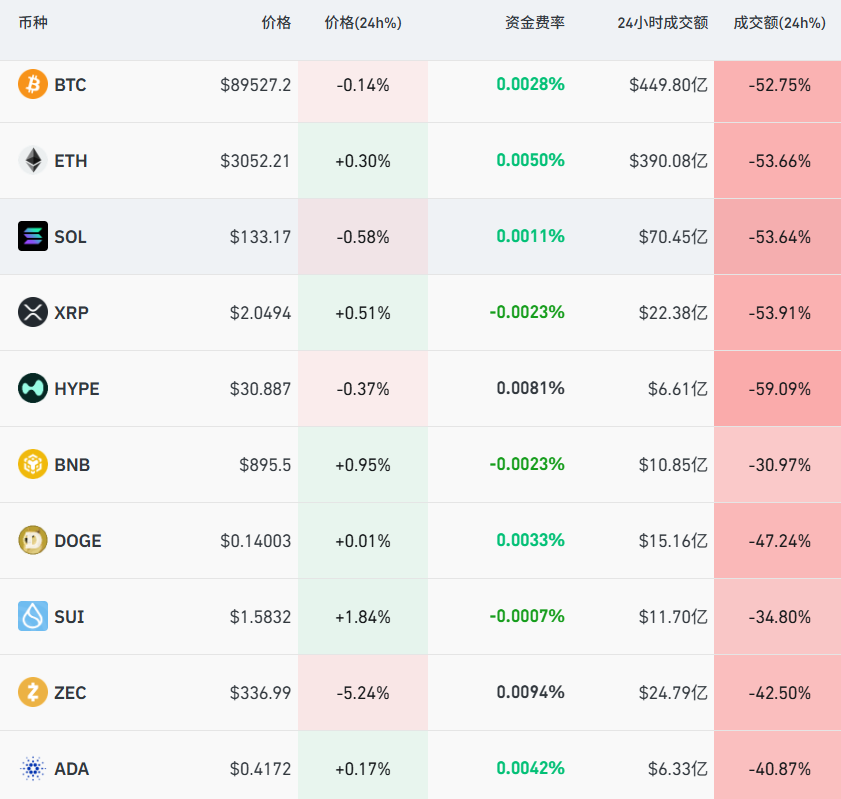 记者丨刘雪莹 编辑丨曾静娇时近年末,比特币代价震动 加剧。12月7日早上,比特币一度向下跌破89000美元,而在6日晚它曾向上触及9万美元。截至7日11:09,加密货币市场涨跌互现,主要品种成交额全线年夜 幅下跌,近24小