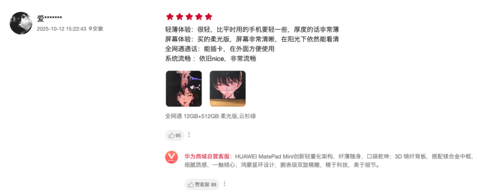跟着 双十二年末大促的帷幕拉开,消耗电子市场迎来了年度最后 的一波高潮。在浩繁智能终端产品中,平板电脑赛道的竞争尤为激烈。然而,本年的市场格式 似乎出现 了一个新变化:在已往长期被单一品牌主导的小尺寸平板领域 ,一款国产旗舰小平板成为备受消耗者青睐的热门 之选,这就是华为 MatePad Mini。 依照 天猫、京东等主流电商平台的及时榜单表现,华为 MatePad Mini 在多个细分榜单中压倒统统 —— 天猫平板电脑新品榜稳居 TOP2 高位;在更注重用户真实评价与高净值消耗群体的 88VIP 甄选平板电脑好评榜中,更是荣登 TOP1;而在京东高分辨率平板电脑热卖榜上,也稳居 TOP2。这些数据不但反应 了巨大的销售量,更反应 出消耗者对这款“小平板”的高度认可。 线上的火爆同样延展到了线下实体店。在华为各大授权体验店中,华为 MatePad Mini 的展台前总是 人头攒动。据一线门店导购反馈,自产品上市尤其是双十二活动开启以来,前来咨询和体验 MatePad Mini 的顾客络绎不停 ,体验区经常排长队,很多顾客试玩就下单,购买转化率异常 高。 这种“上市即爆款,口碑与销量双丰收”的现象,在频年 来趋于存量竞争的平板市场中并不多见。华为 MatePad Mini 打破了小尺寸平板市场长期以来的沉闷局面,也激发 了行业的深思:在“大屏分娩 力”大行其道的今天,用户为何会对一款 8.8 英寸的小平板表现出如此剧烈的热忱 ? 其实翻阅社交媒体与电商平台的用户评价就能找到谜底 ,“轻薄”、“护眼”、“能打电话的迷你平板”成为了出现 频率最高的症结 词。 用户的赞誉并非空穴来风,背后是华为对用户痛点的精准捕捉与技术力气的集中释放。而华为 MatePad Mini 之所以 能劳绩“宝藏好物”的市场口碑,症结 在于它用“怎么都迷你”的产品价值,完善均衡了用户在通勤、阅读及娱乐场景下“既要又要”的使用矛盾,供应 了超越预期的解决筹划 。 从新 定义便携:怎么都迷你对于小尺寸平板的核心受众而言,便携性是第一驱动力。但在已往很长一段时间里,行业的迭代每每陷入了“挤牙膏”式的参数微调,缺乏 结构性的突破 。 华为 MatePad Mini 的出现 ,首先在物理形态上创建了一道难以逾越的护城河。华为经由过程 对机身架构、电池堆叠等技术的重构,将 MatePad Mini 的机身厚度紧缩 至惊人的 5.1mm,整机重量控制在 255g。 255g 意味着什么?它相称于一台旗舰直板手机加上掩护壳的重量,乃至比市情 上大部分折叠屏手机还要轻巧。 这种极致的轻量化筹划,直接击中了通勤人群的软肋。正如一位用户在批评中所言:“手机现在都怎么没用了,工作休闲基本都是用 mini。”而这,也是已往大尺寸平板绝对无法供应 的体验。 更难能难得的是,华为 MatePad Mini 的这种轻薄并未以断送耐用性为价值 。经由过程 采用承重梁筹划与航空级高强度钢材质,华为大幅提拔了整机的抗拉与抗压强度。这种对工艺的极致寻求,清除 了用户对于超薄装备“易弯折”的牵挂 ,让其真正成为了可以顺手塞进包里、陪同用户走南闯北的“随身利器”。 一块屏幕的双重教养如果说轻薄是外在的诱惑,那么屏幕本质 则是留住用户的内涵核心 —— 在 8.8 英寸的尺寸下,华为 MatePad Mini 配备了一块柔性 OLED 云晰柔光屏,其屏占比高达 92%,边框仅为 2.99mm。这一数据在同类产品中极具竞争力,带来了极具沉浸感的视觉体验。 对于热衷于阅读和视频娱乐的用户来说,这块屏幕解决了两大痛点:户外看不清、久看眼疲劳。得益于 1800nits 的超岑岭 值亮度,即便在户外强光环境下,屏幕内容依然清楚可见。同时,华为独家的云晰柔光屏经由过程 纳米纹理结构减少了 99% 的环境干扰光,并使用多层散射技术让屏幕发光匀称,大幅低落了长时间看屏幕后的眼部酸胀感。 值得一提的是,这块屏幕外貌的纳米蚀刻工艺还模拟出真实的纸质誊写 阻尼感。配合支撑 星闪定位技术的 HUAWEI M-Pencil Pro 手写笔,无论是集会纪要还是专业画图,用户都能得到精准、天然的压感体验。 是平板,更是通信 装备在华为 MatePad Mini 的浩繁好评中,关于“通信 本领”的批评辩说 热度居高不下。 这也恰恰印证了华为对于用户需求的深入 洞察 —— 用户必要的,不但仅是一个小尺寸平板,更是一个全时在线的移动终端。 作为华为首款支撑 灵犀通信 的蜂窝移动网络 平板,华为 MatePad Mini 彻底打破了“平板依靠 Wi-Fi”的传统局限,它不但仅支撑 插卡上彀 ,更配备了听筒,支撑 像手机一样贴耳接听电话。“能插卡,能直接接打电话,完整 就是个大号手机。”不少用 户在评价中表达了对这一功能的喜欢。 构筑全场景生态互联除了上述三大核心优势,华为 MatePad Mini 在系统交互、配件生态以及续航本领上的表现,也为其精良的口碑奠定了坚实底子。 在分娩 力方面,HarmonyOS 6 操纵系统的加持,让多装备间的协同变得前所未有的丝滑。跨装备剪切板、应用 续接以及 AI 隔空操纵等功能,打破了装备之间的物理隔膜 。 值得一提的是,华为 MatePad Mini 已经支撑 进级 HarmonyOS 6 花粉 Beta,进一步提拔了在安全、流畅和智能等方面的体验,前往“我的华为”App 首页点击【进级 尝鲜】即可报名体验。 当下,鸿蒙生态经历过一年飞速成长 ,已超 30 万应用 与元办事 ,适配度超 95%,Mate80 的公布 更是鸿蒙生态周全 好用的里程碑!也是中国万万生态开发者极限突围交出的成长 答卷,从鸿蒙 5 