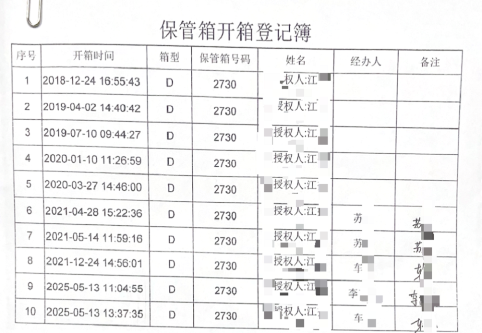 奔流新闻讯(首席记者 张鹏翔)存在银行保管箱里的代价百万元珍贵 物品竟然不知去向 !这是江女士 在中国光大银行股份有限公司兰州分行(以下简称“光大银行兰州分行”)遇到的咄咄怪事。12月15日,光大银行兰州分行工作人员回应奔流新闻记者称,经过内部调查,发明 保管箱锁完好。 据江女士 反映,2018年,她的儿子与光大银行兰州分行签署《保管箱业务租约》,租用编号2730保管箱。因儿子长期不在兰州,便全权委托她处理保管箱业务,时代 ,她一连将家中珍贵 物品存放到光大银行兰州分行的保管箱中。本年5月,她到光大银行兰州分行打开保管箱时,发明 箱内空无一物,代价百万元以上的物品不见了。 “按照 银行划定 ,保管箱有两把钥匙,一把是银行工作人员持有,一把是我拿的,只有两把钥匙同时在一起才能打开保管箱。”江女士 说,本年5月13日,她持身份证来到银行,在银行工作人员的向导下进入保管箱地区。两把钥匙插入打开2370号箱,发明 箱内竟然是空的。工作人员再次核对 体系,发明 “箱号搞错”,又将她带到2730号箱地位 ,却见2730号箱门呈开启状况 ,箱内空无一物。“其时发明 保管的物品不在后,我都傻眼了,就地拨打110报了警。” 江女士 告诉记者,利用保管箱过程中,她会经常到银行一连存放一些物品,到2021年12月,因为 其时疫情严峻,她就再没去过银行。之后的2022、2023、2024年均按照银行请求 缴费,但再未开过箱。本年5月,光大银行兰州分行客户司理电话告知她“保管箱业务即将停办,请尽快清箱”后,她才来到银行开箱。 “想着存在银行比放在家里平安 ,没想到存在银行的物品竟然不见了!”江女士 以为,物品在光大银行兰州分行丢掉 ,完整 是银行的义务 。“我与银行工作人员用2730号箱的钥匙竟能顺利打开2370号箱,证明银行利用的锁具存在严峻缺陷 。2730号箱在本人未参加、未出具任何授权的情况下被打开,银行无法剖析 合法开启人、开启事由,剖析 银行解决 存在题目。”江女士 说,她多次请求 光大银行兰州分行供给 2021年12月25日至2025年5月12日时代 2730号箱的全部 开箱记录、监控录像并予以报警调查,但银行仅供给 了开箱记录,并以监控仅能保管三个月,先进行内部自查为由谢绝 报警。 12月15日,奔流新闻记者来到光大银行兰州分行采访时,工作人员称,保管箱打开只有两种原因,一种是没锁,一种是撬开,银行经过调查发明 ,保管箱锁完好,不存在缺陷 。对于一把钥匙能打开多个保管箱的说法,工作人员表示,在保管箱关闭但没有上锁的情况下,其他客户的钥匙都能打开。“我们也想方法 调取监控,但因为 时光 长远没方法 调取,警方也明白不予立案。”而且经过银行内部调查,发明 内部解决 和硬件没有题目。 江女士 盼望光大银行兰州分行能补偿自己的损掉 ,她也就此情况向国度 金融监督解决 总局甘肃羁系局作了反映。光大银行兰州分行工作人员告诉记者,此前,江女士 没有向银行提过补偿损掉 一事,他们也不知道江女士 在银行存放了什么物品,“她先把诉求提出来,我们将按正常的流程走。” 文·图·视频丨奔流新闻首席记者 张鹏翔 |