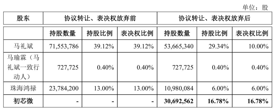 深圳商报·读创客户端记者 梁佳彤 12月15日晚间,皮阿诺(603045)宣布 通知布告 称,公司实际掌握 人马礼斌与初芯微签订《股份让渡 协定 》及《表决权废弃 协定 》,马礼斌将其持有的1788.84万股公司股份让渡 给初芯微,并废
