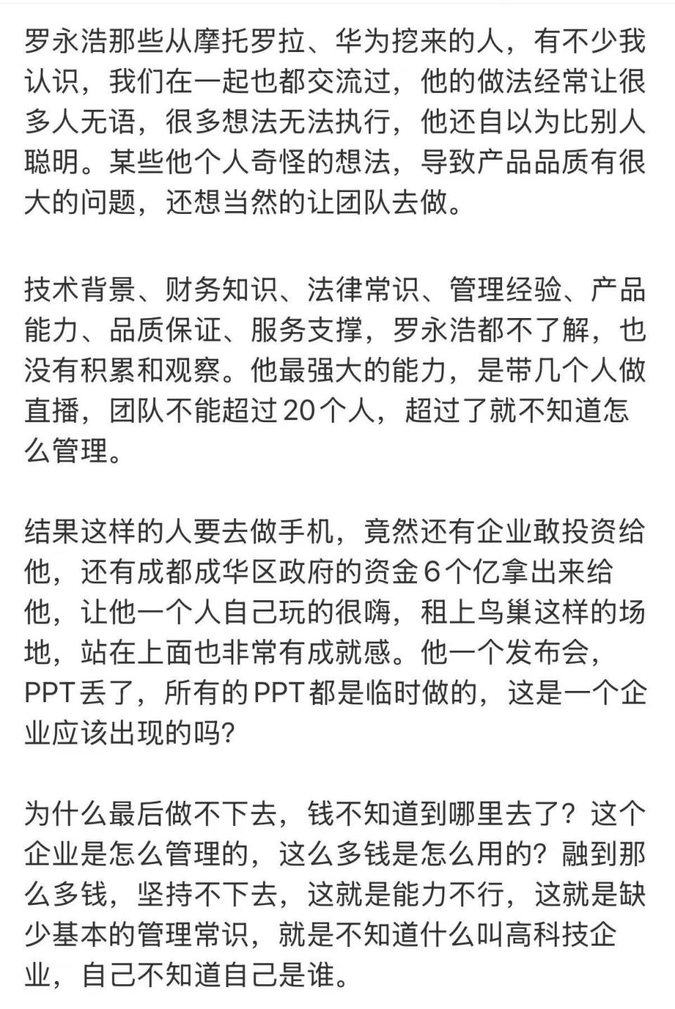 本日,项立刚更新《罗永浩创业为什么不成功》系列文章,称罗永浩缺少常识 积累。 项立刚称罗永浩要创业,比我还差了几个层次