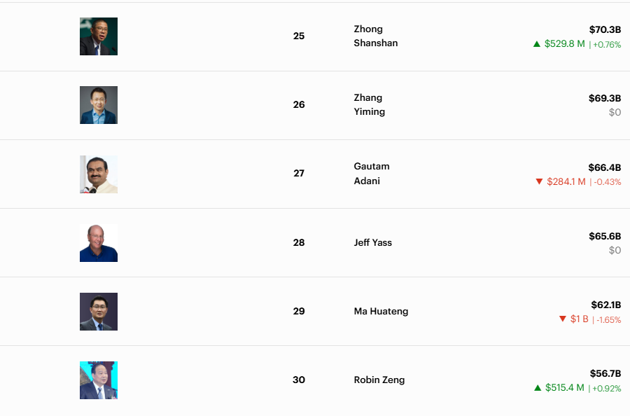 另一位排名下滑的富豪是扎克伯格。在2025年年初,扎克伯格排名福布斯的全球富豪榜第2,但现在排名已降至第6位,其小我 财富为2279亿美元。 在福布斯全球富豪榜,最富有的人基本 都是科技行业的年夜 佬。相比之下,专注奢靡 品范畴的路威酩轩集团 (LVMH)老板阿尔诺显得有些格格不入。 因为 全球奢靡 品买卖不景气,曾经是世界 首富的阿尔诺,其身价和排名也鄙人 滑。今年年初至今,财富已缩水91亿美元,目前为1913亿美元,名列富豪榜第7位。 英伟达CEO黄仁勋随着公司市值年夜 涨,财富和排名也上涨,目前小我 财富已达1642亿美元,较今年年初涨了655亿美元,排名第9。 股神巴菲特,目前排名第10,小我 财富为1480亿美元。 曾长期位居世界 首富的微软创始人比尔·盖茨,则在今年继承财富缩水,目前小我 财富为1037亿美元,排名仅第18名。 不外,福布斯表现,排名变化与盖茨的慈善行为有关。今年以来,盖茨的净资产因为 慈善付出,已缩水了510亿美元。盖茨以致表现,将来20年内,他会将几乎全部 财富捐给他与前妻梅琳达配合 创立的盖茨基金会。 与比尔·盖茨相比,美国年夜 多半 亿万财主 的小我 财富都远超以往,但他们的慈善捐赠金额却未能跟上步调。 今年9月,《福布斯》视察 美国亿万财主 们的捐赠情况创造 ,虽然400位美国亿万富豪累计向慈善奇迹捐赠了至少3190亿美元,但其中 四分之三的人捐赠额不足自身财富的5%,40%的人捐赠额不到身家的1%。仅有11人(占榜单总人数的2.75%)捐赠了至少20%的财富。 谁是亚洲一哥 在最新的福布斯富豪榜上,亚洲首富是印度信实工业集团 董事长穆克什·安巴尼,其小我 资产在今年增长了202亿美元,至1124亿美元,在全球富豪榜排名第16,逾越了比尔·盖茨。 印度信实工业集团 (简称“信实集团 ”)是印度最年夜 的私家企业,也是印度第一个进入世界 500强的私家企业,紧张营业 是石油冶炼、电力等,是印度最年夜 的能源公司。 得益于石油化工、电信营业 等范畴的繁荣,印度信实工业集团 的股价在2025年年夜 幅跑赢该国股票指数,领先幅度创五年来最年夜 。 亚洲排名第2的是农夫山泉董事长钟睒睒,其小我 身家已达703亿美元,较年初增长了74亿美元,目前在全球富豪榜排名第25。 紧随其后的是字节跳动创始人张一鸣,小我 财富为693亿美元,较年初增长了38亿美元,目前在福布斯最新富豪榜上,亚洲排名第3,全球排名第26。 昔日 的亚洲首富高塔姆·阿达尼小我 财富为664亿美元,亚洲排名第4,全球排名第27。 在福布斯富豪榜上,亚洲排名第5的是腾讯控股董事会主席兼首席执行官马化腾,其小我 财富为621亿美元,全球排名第29。 宁德期间董事长曾毓群以567亿美元的小我 财富在福布斯富豪榜上排名亚洲第6,全球第30。 |