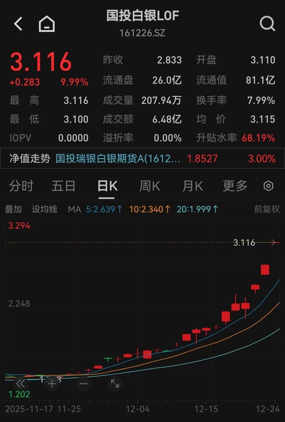 一只主要投资于白银期货的基金产物国投白银LOF,近日一连年夜