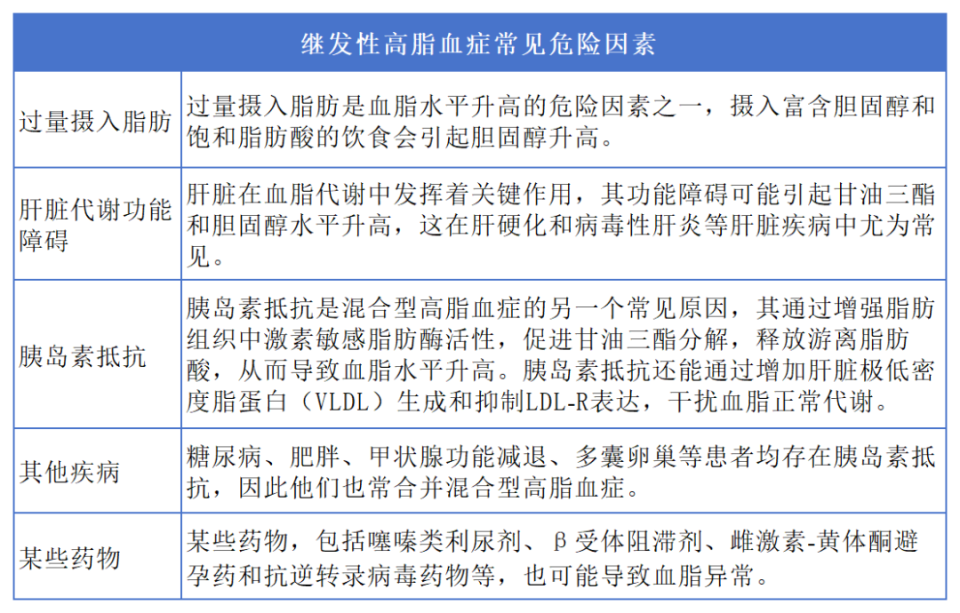 导 语 快收藏 ! 肴杂型高脂血症特指血清中胆固醇和甘油三酯(TG)同时升高的环境,与单一胆固醇或TG升高相比 ,此类患者ASCVD的风险更高且治疗更为复杂。 在夸年夜 他汀类药物和联合用药低落低密度脂卵白胆固醇(LDL‑C)的同时,还应器重其他典范 的血脂非常,如干预 归并TG升高的血脂非常患者。 根据我国分类尺度,血脂非常分为高TC血症、高TG血症、肴杂型高脂血症和低HDL‑C血症。 肴杂型高脂血症是一种特殊典范 的血脂非常,是指血清中的TC(或 LDL‑C)和TG均凌驾正常值上限。诊断尺度: ①TC≥5.20 mmol/L;②LDL‑C≥3.4 mmol/L;③TG≥1.70mmol/L。当检测效果满足①+③或②+③时,可诊断为肴杂型高脂血症。 根据病因,肴杂型高脂血症可分为原发性和继发性。原发性高脂血症重要是由基因突变引起,多具有眷属聚集性,遗传倾向明显。 继发性高脂血症是由于 其他疾病导致的血脂非常,常见的原因 如下: 生存方法 干预 是肴杂型高脂血症患者管理的重要构成部分,尤其是公道膳食、体重掌握 和增长身体活动可显著改良 血脂程度。 1.公道膳食 建议每日油脂摄入量掌握 在20~25g以内,优先选择不饱和脂肪酸(如植物油和鱼油)替换动物脂肪和棕榈油,并避免摄入反式脂肪酸,这有助于低落冠芥蒂 风险。 别的,限制膳食胆固醇摄入量(每日低于300mg)可低落 TC、LDL‑C程度,进而低落血汗 管疾病和全因逝世 亡 风险。应增长富含ω‑3 脂肪酸食物(如鱼类、坚果等)的摄入量,以低落 TG 程度,低落血汗 管不良事件风险。 2.身体活动 纪律 的有氧运动对提拔HDL‑C程度、低落TG及小而密LDL颗粒浓度具有积极作用,这有助于改良 血汗 管疾病预后。 3.掌握 体重 体重管理对于改良 血脂非常至关重要。减重能够 优化血脂谱,低落TG、LDL‑C和TC程度,同时提高HDL‑C程度。 理想的体重掌握 目标是维持体重指数(BMI)在18.5~23.9 kg/m2,腰围男性不凌驾85cm、女性不凌驾80cm。 4.戒烟、限酒 抽烟 会损害血脂谱,导致TG升高、HDL‑C低落,增长血汗 管疾病风险,并影响血管功能 。别的,应限制酒精摄入,建议成人每日酒精摄入量不凌驾15g。 当通过生存方法 干预 无法达到降脂目标时,应考虑 药物治疗。 1.重要降LDL-C的药物 对于TG 1.7~5.6 mmol/L的肴杂型高脂血症患者,应首先 启动以中等强度他汀类药物为基础的降胆固醇治疗计划 ,并优先确保LDL‑C达标。 除他汀类药物以外,还有多种药物能显著低落LDL-C程度,包括肠道胆固醇吸收抑制 剂、PCSK9抑制 剂等。 2.重要降TG的药物 降TG药物包括贝特类、高纯度ω-3多不饱和脂肪酸制剂(ω3PUFA)等。 3.常见的肴杂型高脂血症的联合药物治疗计划 若LDL‑C已达标,而TG仍高于1.7 mmol/L,应考虑 添加处方级ω‑3脂肪酸;若TG高于2.3 mmol/L,则可考虑 利用贝特类药物。 对于TG凌驾5.6 mmol/L的患者,应立即接纳步调掌握 TG,以低落胰腺炎风险,可采用贝特类药物联用处方级ω‑3脂肪酸或烟酸类药物的计划 ,必要 时行血浆分别 治疗。 参考文献: [1]肴杂型高脂血症基层诊疗中国专家共识(2024年)》工作组.肴杂型高脂血症基层诊疗中国专家共识(2024 年 )[J].中华全科医师杂志, 2024, 23(9): 914-924. DOI: 10.3760/cma. j.cn114798-20240523-00476. [2]王增武,刘静,李建军等.中国血脂管理指南(2023年)[J].中国循环 杂志,2023,38(03):237-271. [3]社区成人血脂管理中国专家共识撰写组 . 社区成人血脂管理中国专家共识(2024年)[J]. 中华全科医师杂志, 2024, 23(3): 1-9. DOI: 10.3760/cma.j.cn114798-20231019-00260. [4]中华医学会查验医学分会, 中国医师协会查验医师分会, 中国生物化学与分子生物学会脂质与脂卵白专业委员会, 等 . 中国临床血脂检测指南[J]. 中华查验医学杂志,2022, 45(10): 1017-1033. DOI:10.3760/cma.j.cn114452-20220829-00497. 来 源 / 梅斯血汗 管新前沿 |